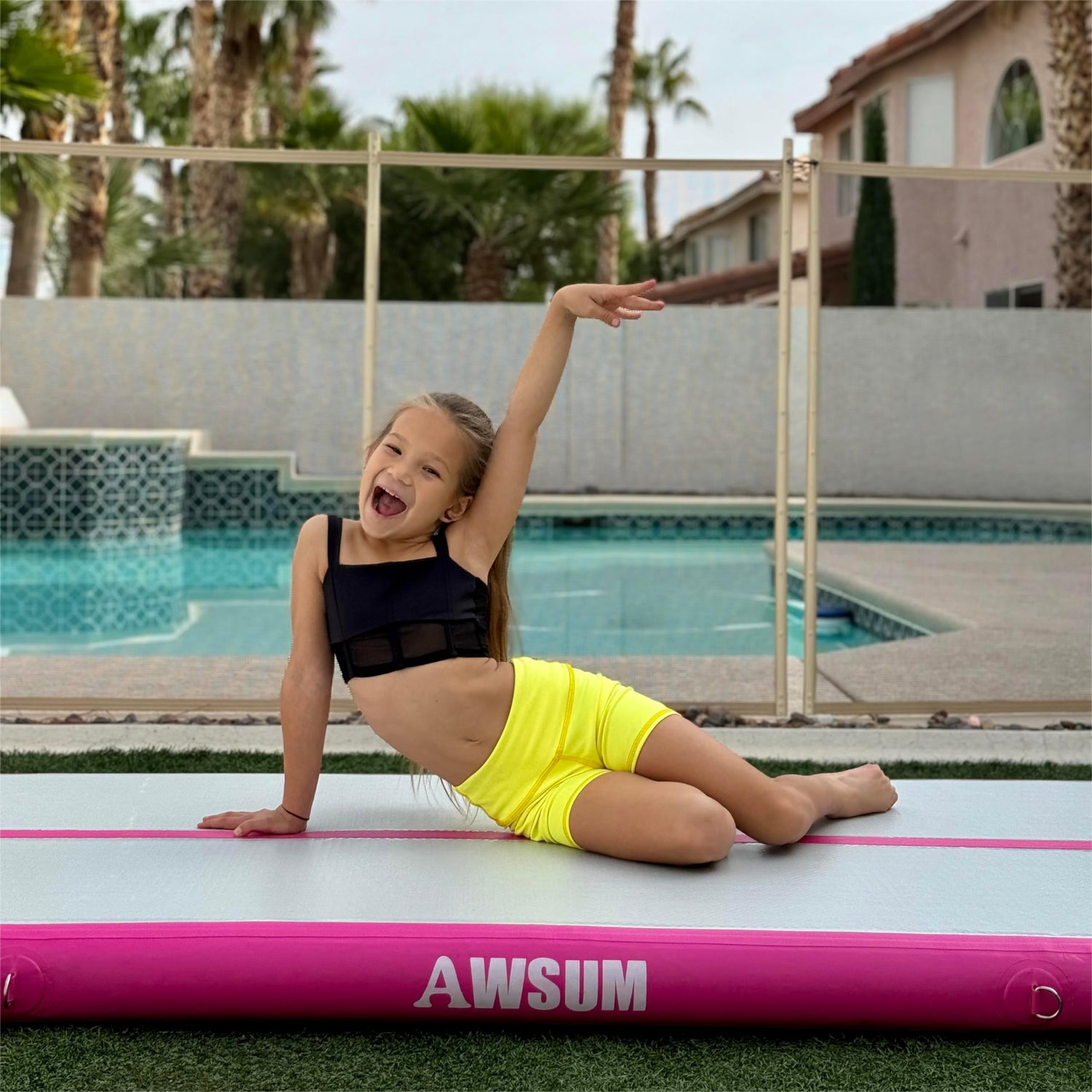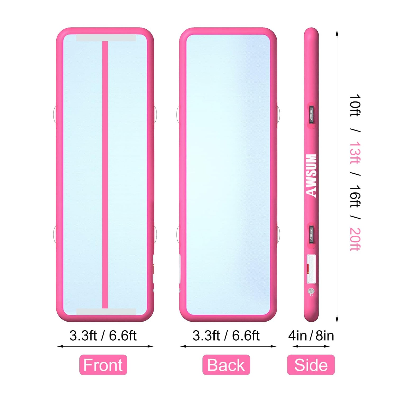 AWSUM Air Gymnastics Mat 10ft/13ft/16ft/20ft/23ft Inflatable Tumble Track mats 4/8 inches Thick tumbling mat with Electric Pump for Home/Gym
