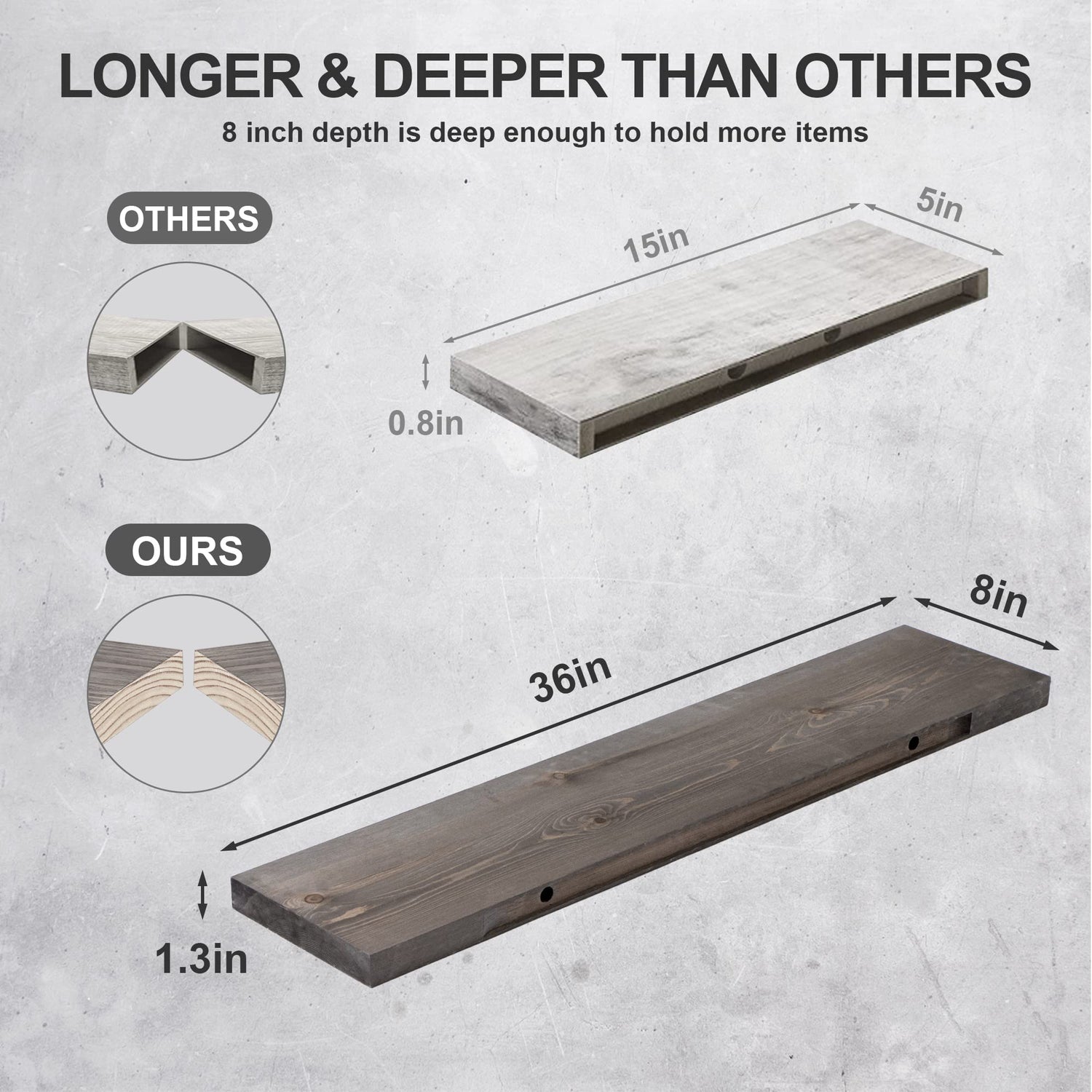 - Easy to Assemble - Come with all installation hardware and clear instructions. You can effortlessly install our floating shelves in just 10 minutes