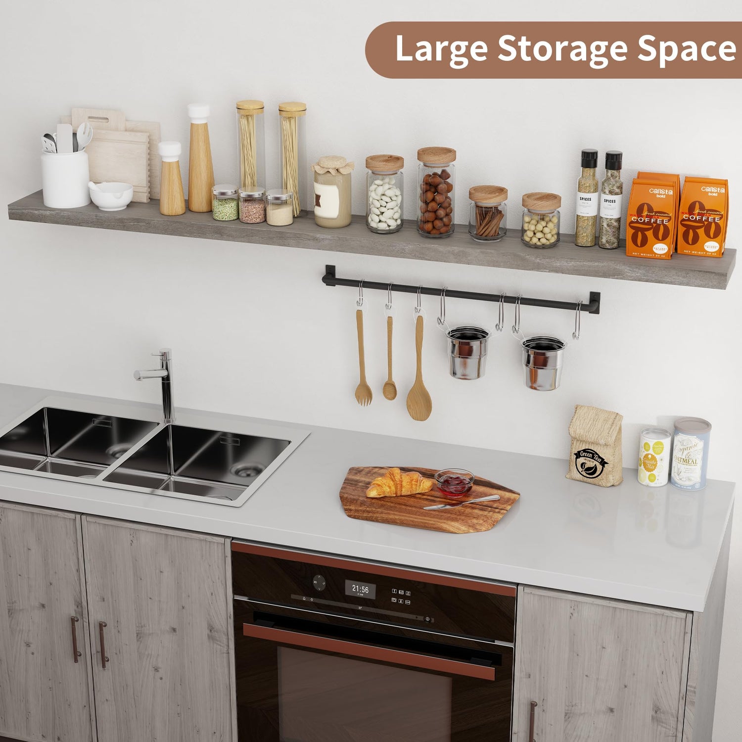 - Deeper and Thicker Design: Our 55 inches hanging shelves are designed to be deeper and thicker than traditional floating shelves, with a thickness of 1.37 inches and a depth of 8 inches. You can display a variety of items, such as photos, books, and knickknacks on these sturdy and spacious floating book shelves for wall