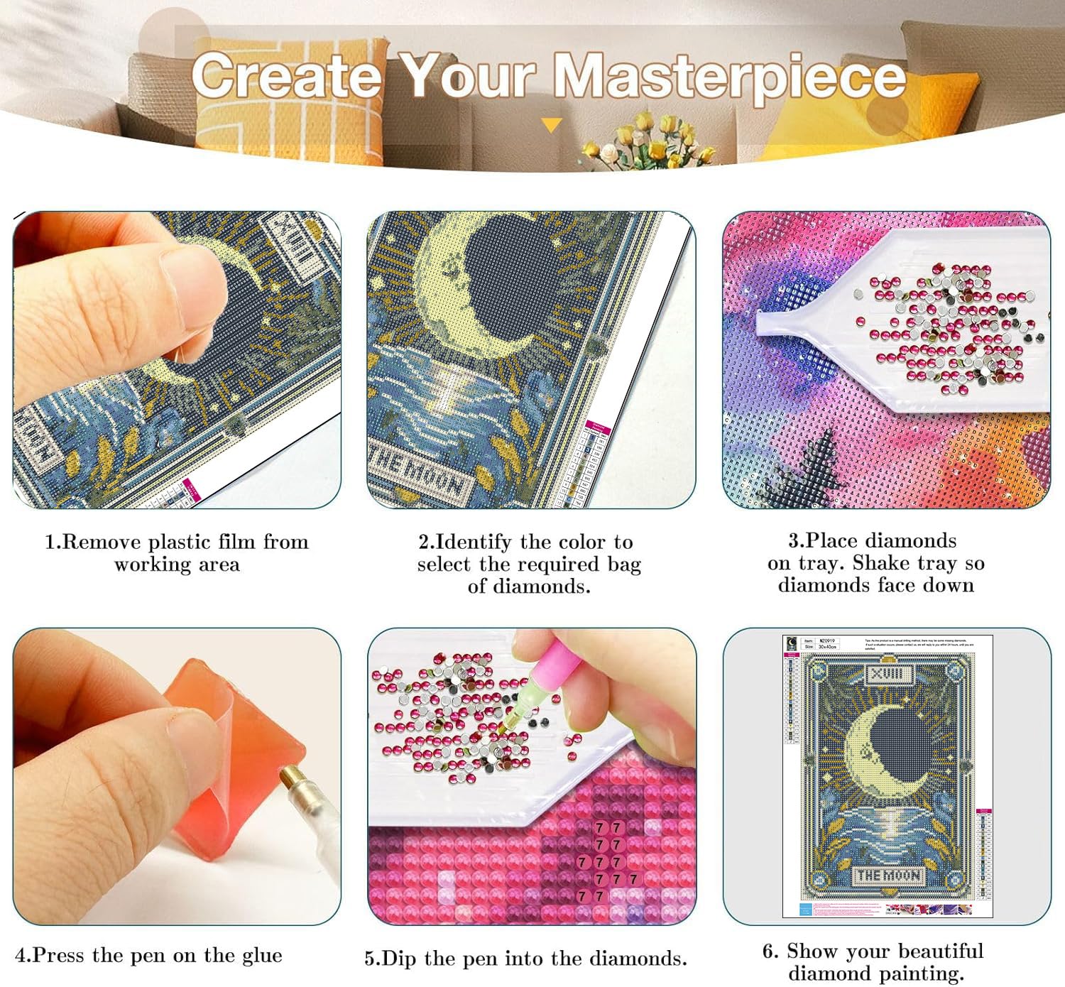- 【Interesting Decompression Crafts for Adults Beginner】5D tarot diamond art kits can regulate emotions and relieve stress. It can also cultivate patience, enhance practical skills, and share happy time with family or friends. Simple DIY diamond painting can experience the sense of accomplishment, enhance self-confidence and perseverance, suitable for people of all ages.