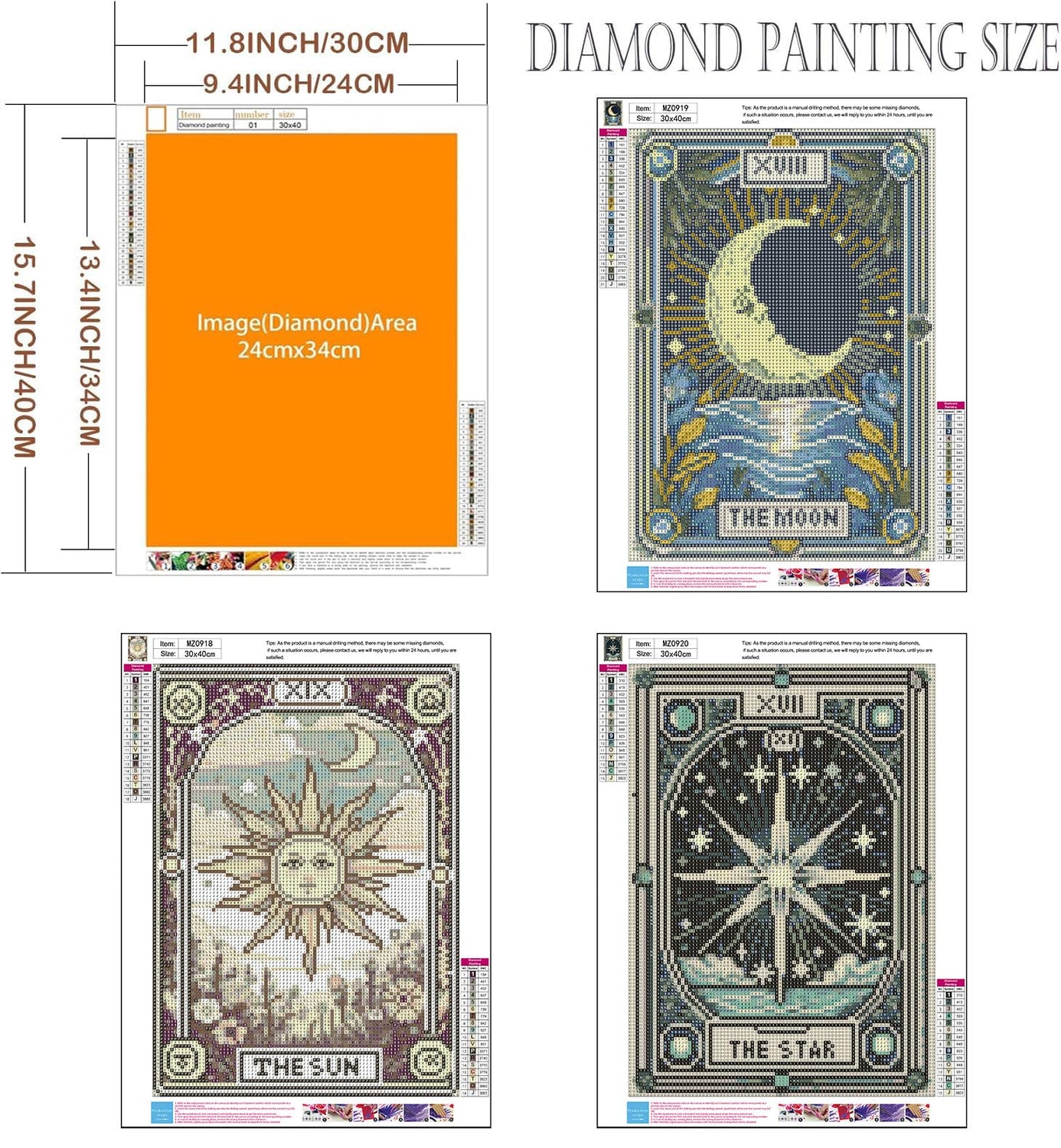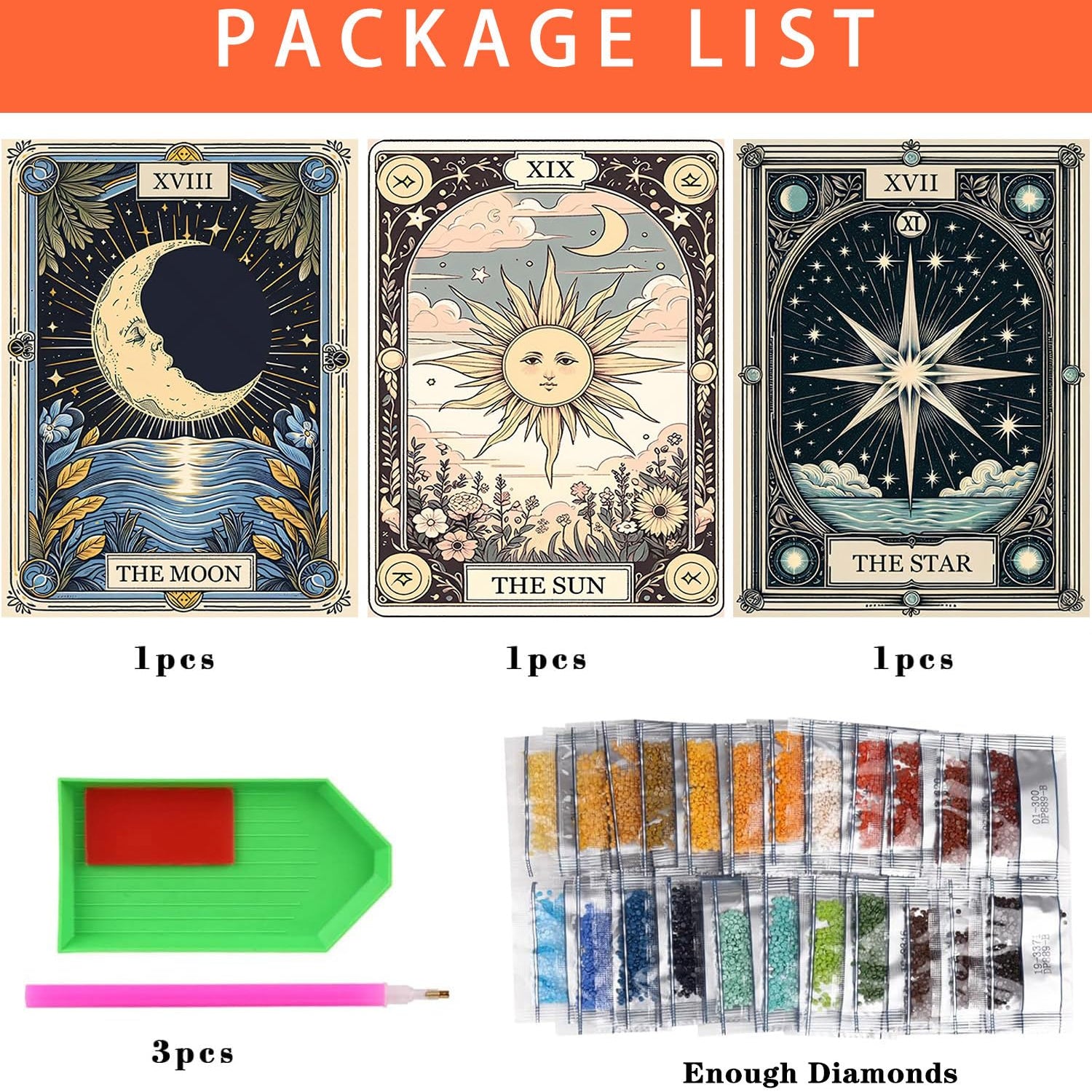 - 【5D Diamond Painting Kits for Adults】3 pack tarot diamond painting, 3*point diamond pen, 3* diamond tray, 3*red glue clay, several plastic bags to store the diamonds, enough colorful round diamonds, we'll provide 30% diamond more than need.