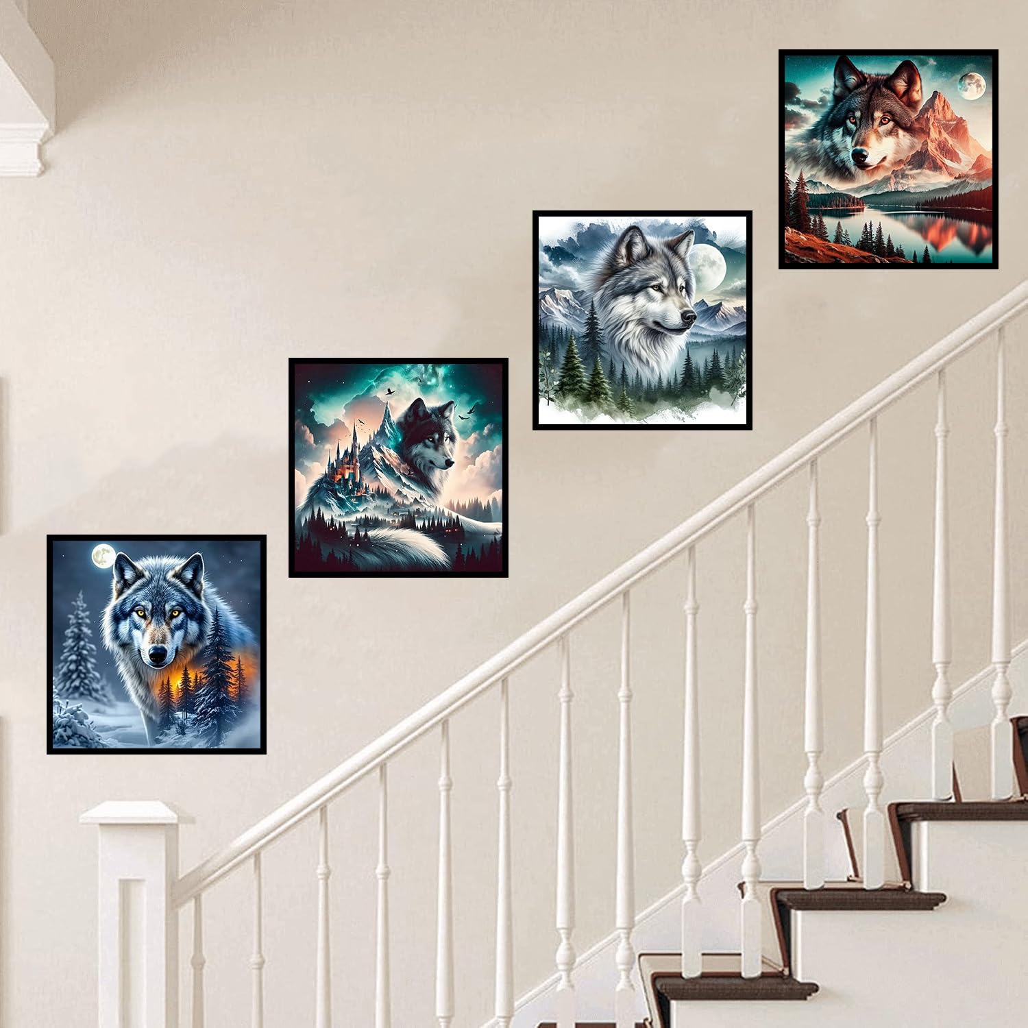 Axquilon 4 Pack Diamond Art Kits for Adults - Wolf Diamond Painting Kits for Adults, 5D Round Full Drill Gem Art, Paint by Diamonds Pictures DIY Crafts Kits 14x14 inch