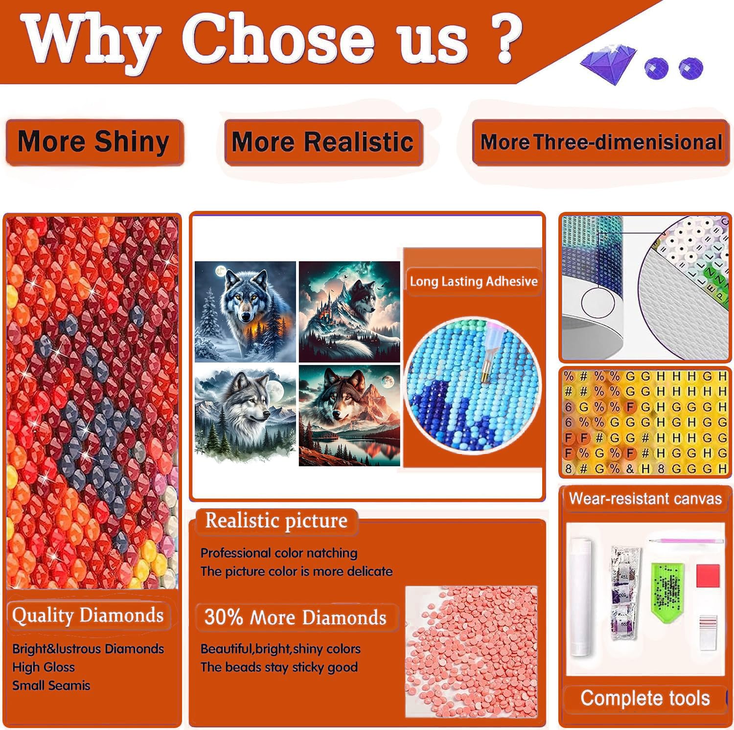 - Interesting Decompression Crafts for Adults Beginner: 5D diamond art kits wolf can regulate emotions and relieve stress. It can also cultivate patience, enhance practical skills, and share happy time with family or friends. Simple DIY diamond painting can experience the sense of accomplishment, enhance self-confidence and perseverance, suitable for people of all ages.