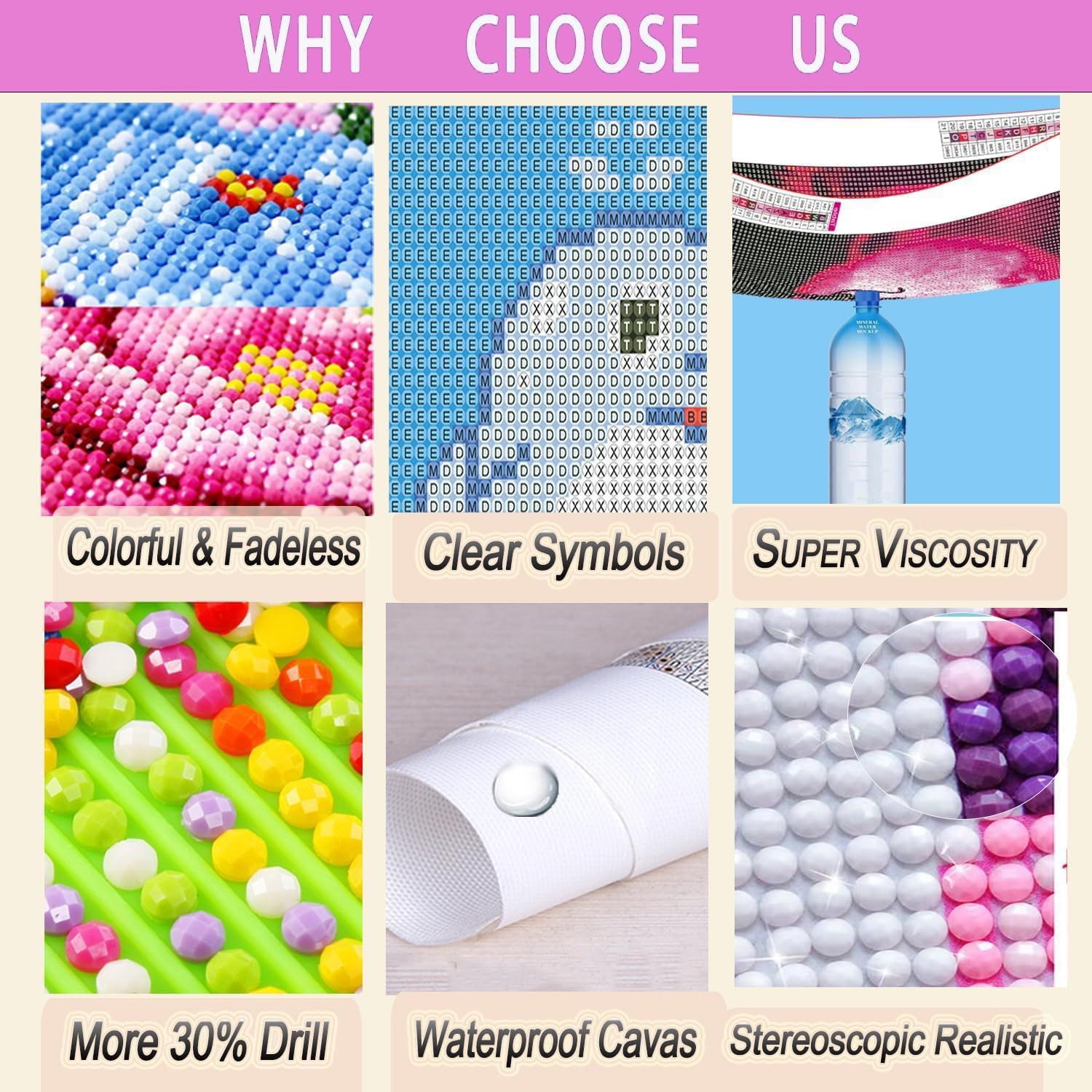 - 【Easy to Read】Skeleton diamond art numbers and symbols on the canvas are clear and easy to read. You get about 30% extra beads in every color to prevent the occurrence of insufficient diamonds. The drills adhered to the canvas without difficulty, and the diamonds stays on very good, wouldn’t fall off.