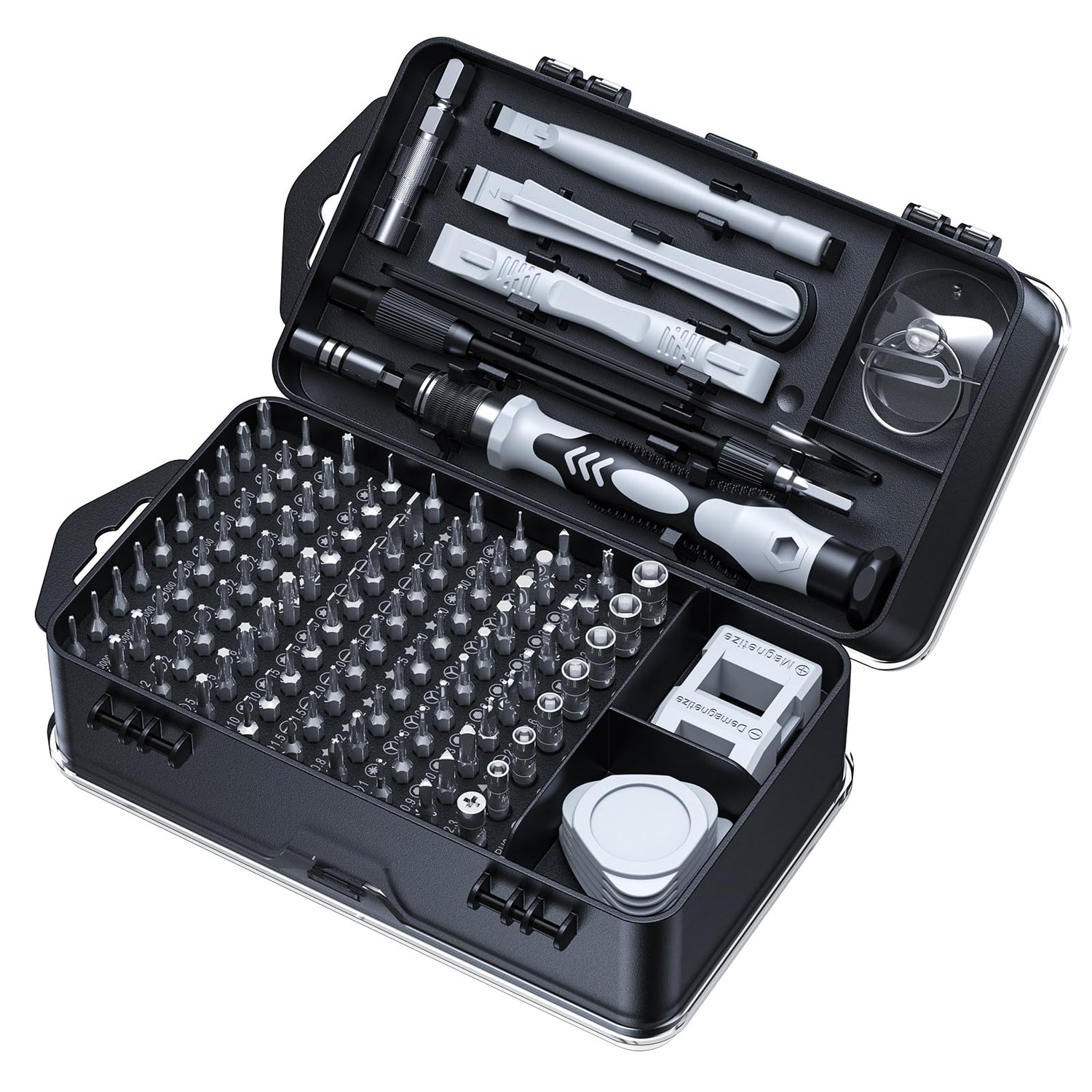- [115in1, Household Must-Have] The small screwdriver set comes with 100 different bits (Phillips, Flat, Torx, Torx Security, Pentalobe, Hexagon, etc.) and various opening tools, ensuring you have the most complete set of repair kit.