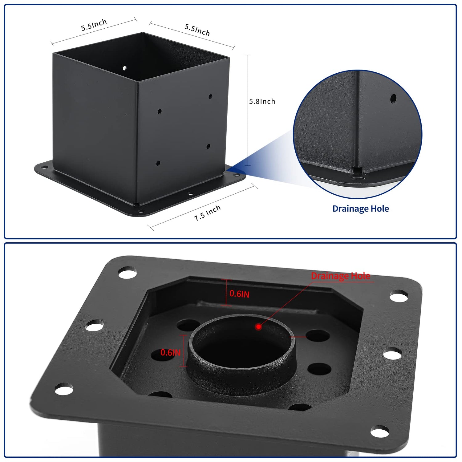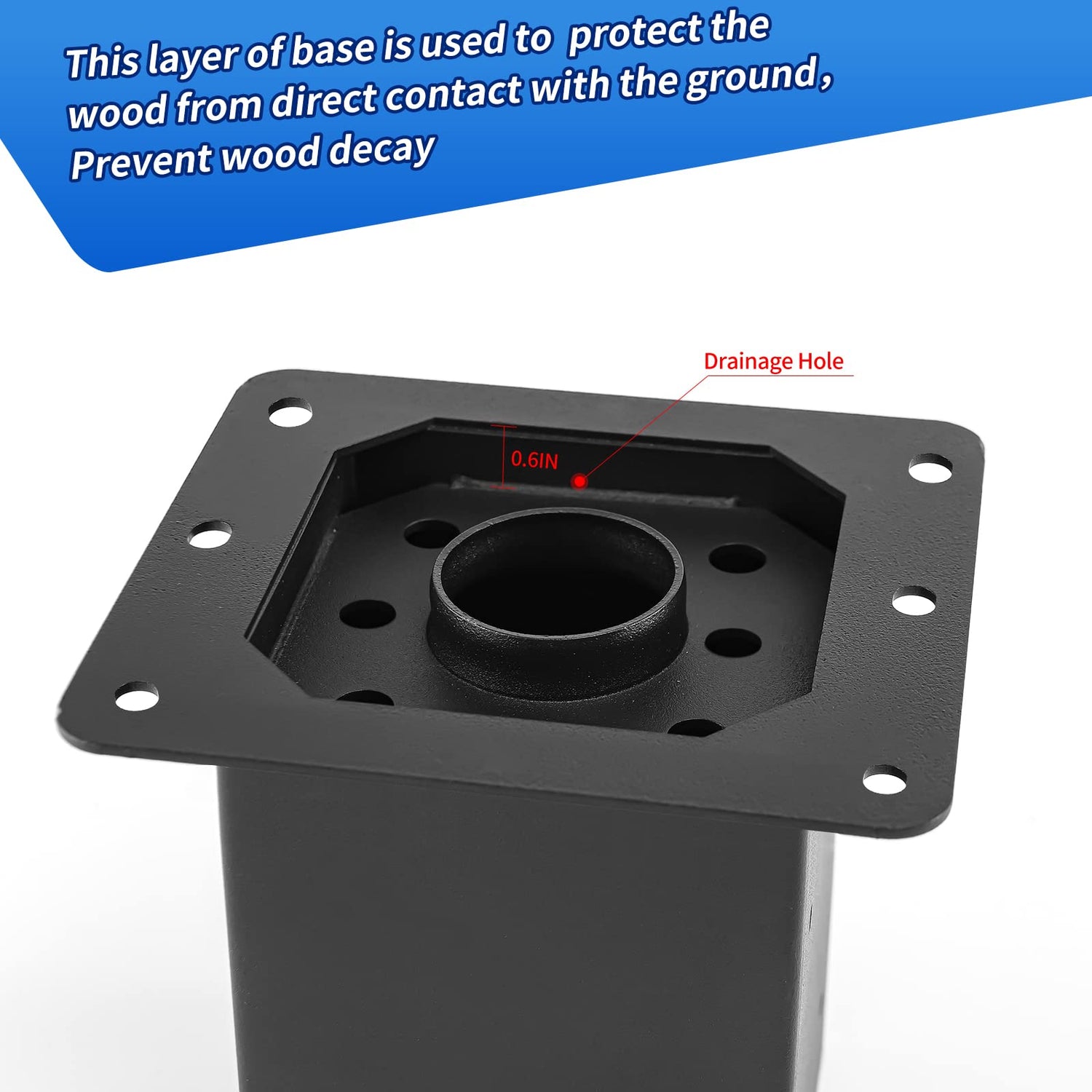 - Material Of 6x6 Post Base: Made of Solid Steel, Black Powder Coated, Rustproof and Strong.