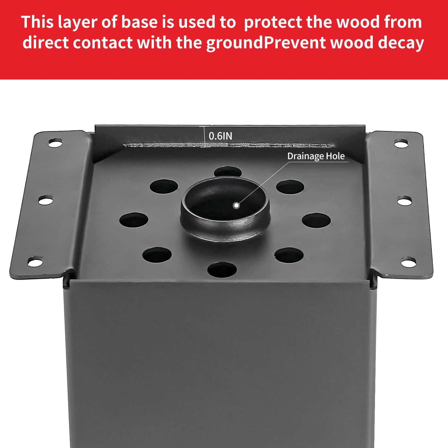 - Unique design: There is a partition at the bottom of the 6x6 post base, which is designed to be completely separated from the ground. Long term use will not cause the wood to rot due to rain. There is a small square box in the middle of base to make it more stable