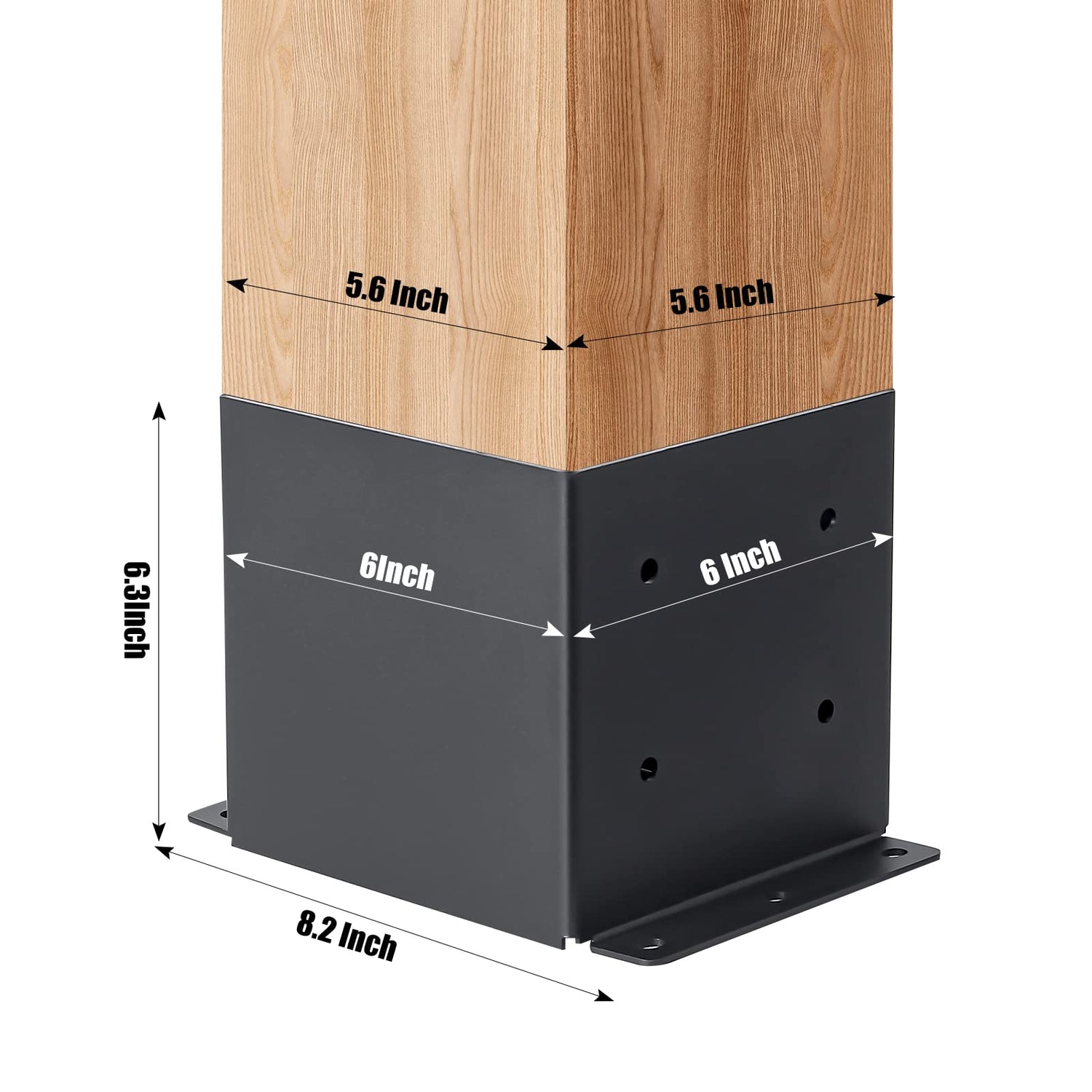 AXWHYS 6x6 Post Base 4 Pcs, (Inner Size 5.6x5.6) Post Brackets Kit, Heavy Duty Black Metal Powder-Coated Post Anchor Outdoor Framing Module Fit for Support Deck Base Plate Pergola Brackets Fence Kit……