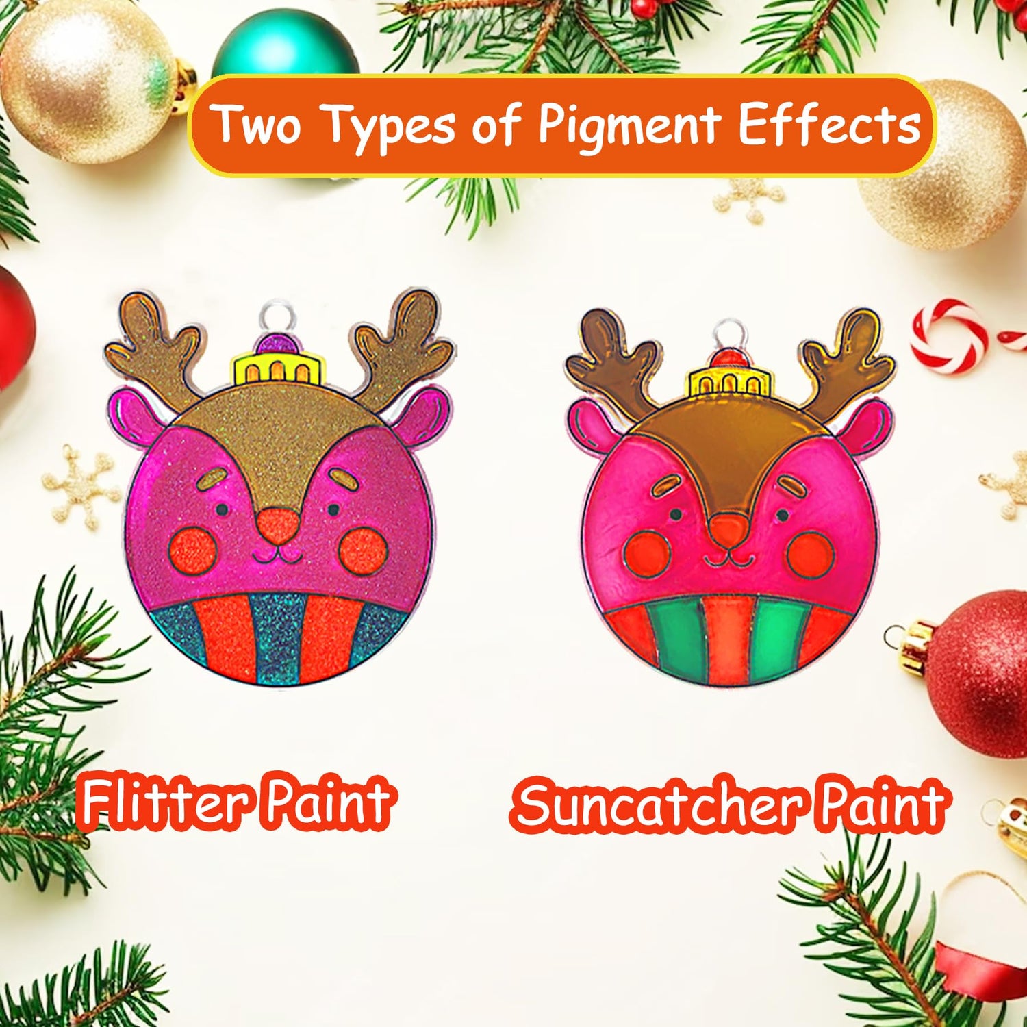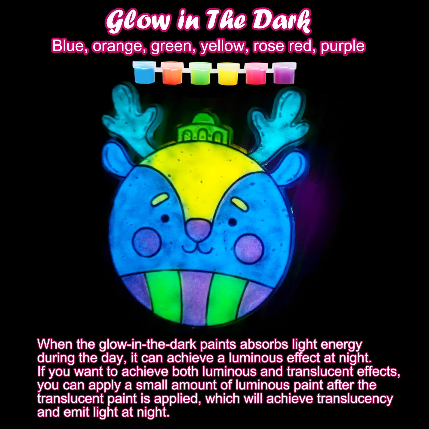 - Glowing & Suncatcher Paints:These window art suncatcher crafts kits suncatcher paint include orange, yellow,green, grass green, blue, pink, red, rose purple, pink purple,light brown,Decorate christmas tree santa suncatcher with 5 glow-in-the-dark paints(blue, orange, green, yellow, rose, purple), unleashing your imagination freely.it is very suitable for decorating christmas party.