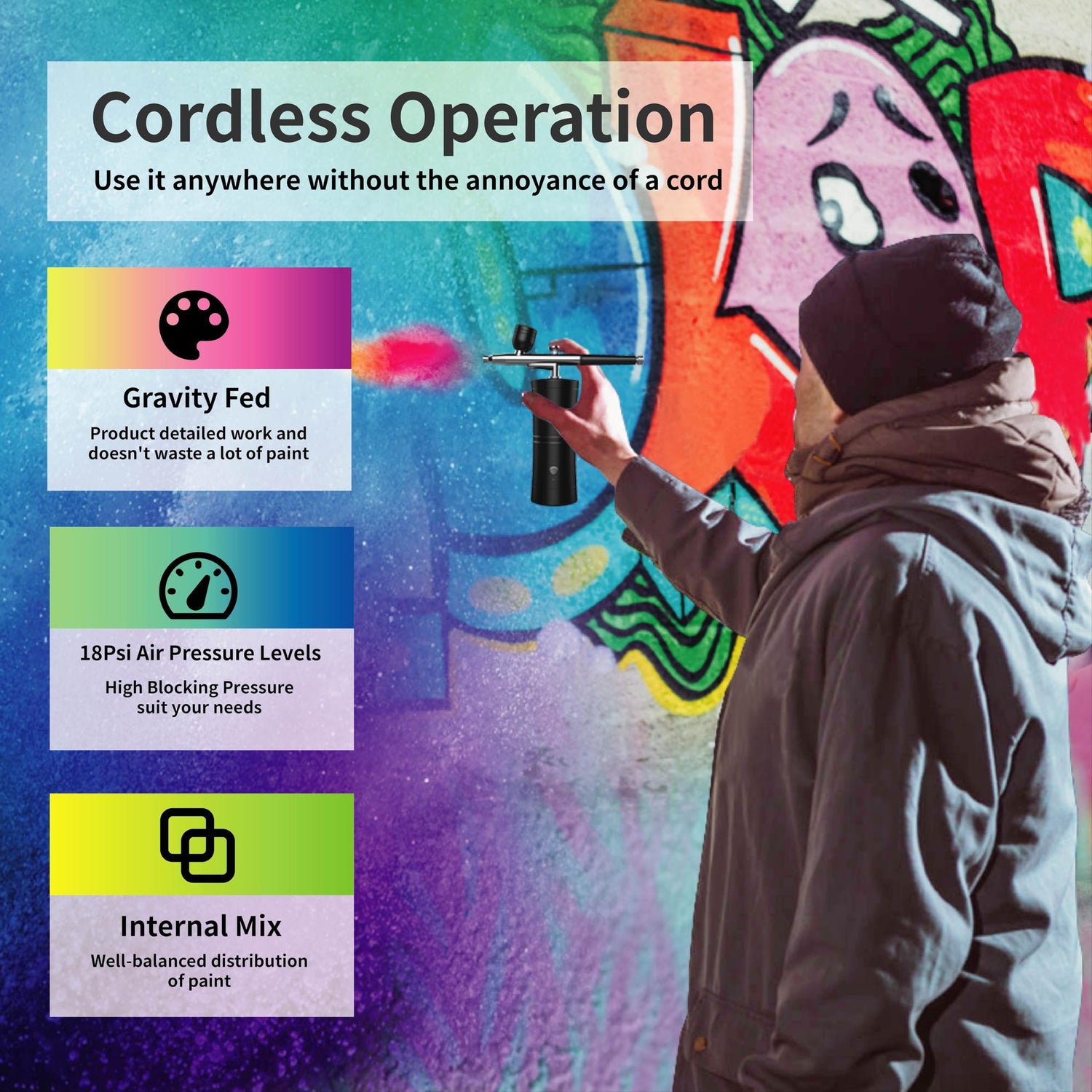 AYYHG Cordless Rechargeable Airbrush Kit with Compressor - Adjustable High-Pressure Non-Clogging 0.3mm Nozzle Complete Set for Nail Art, Cake Decor, Barber, Model Painting & Makeup (Black)