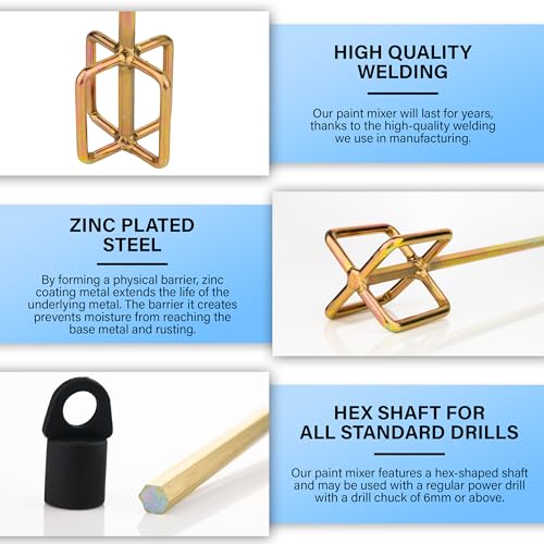 - We Care For You: For easy storage, our paint mixer drill attachment has an additional hole-punched cap which allows you to hang it anywhere. We made sure that our 43cm long mixer arrived safely by packaging it with care
