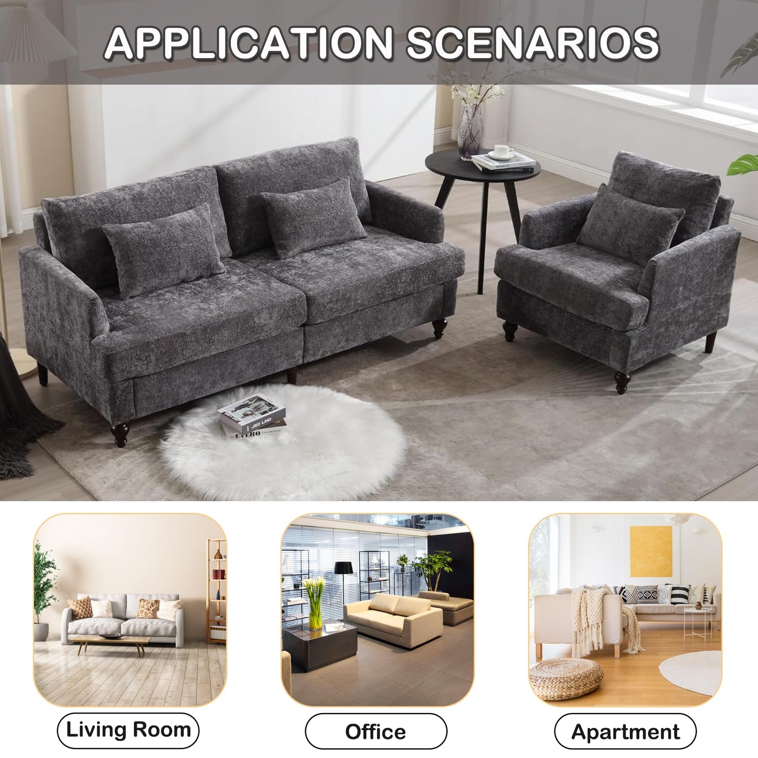 - Modern Minimalist Design: Curved edges and thick foam padding create a sophisticated look that is both stylish and comfortable. The linear and minimalist seat cushion design complements the armrests, chenille sofa set adding brilliance to your entire home with modern craftsmanship and classic aesthetics.