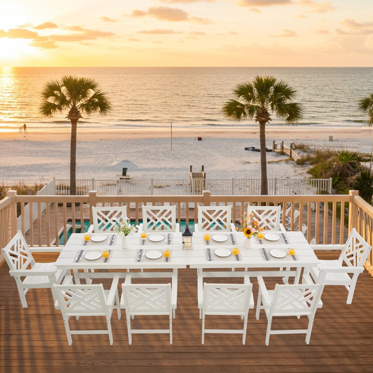 - Stylish & Durable Outdoor Dining Set: Elevate your outdoor space with this 12-piece HDPE Dining Table Set. Made from premium HDPE, it’s waterproof, rust-resistant, and built to last. The UV-resistant material keeps it looking new for years.