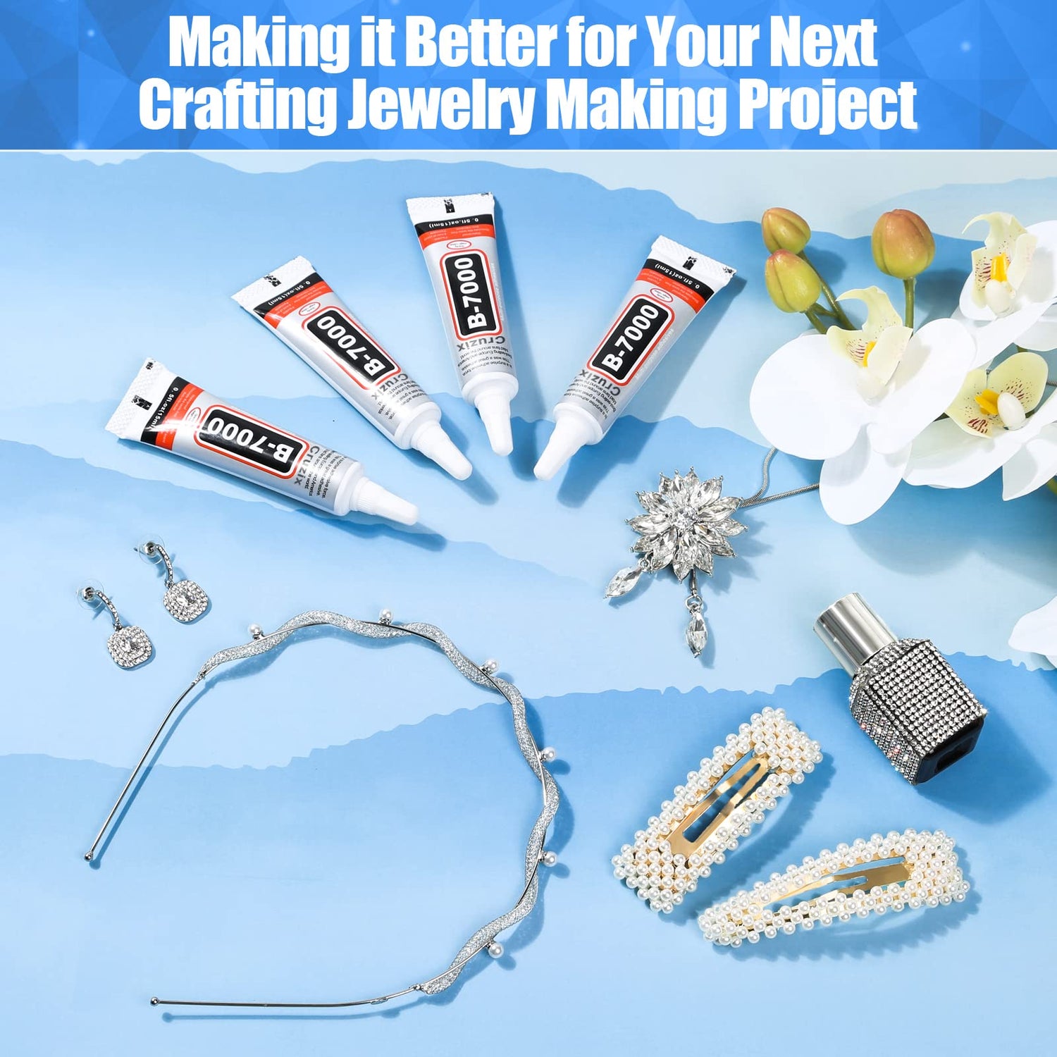 B-7000 Glue Clear for Rhinestone Crafts, Jewelry and Bead Adhesive B7000 Semi Fluid High Viscosity Glues for Clothes Shoes Fabric Cell Phones Screen Repair Metal Stone Nail Art Glass (4x15 ml/0.5 oz)