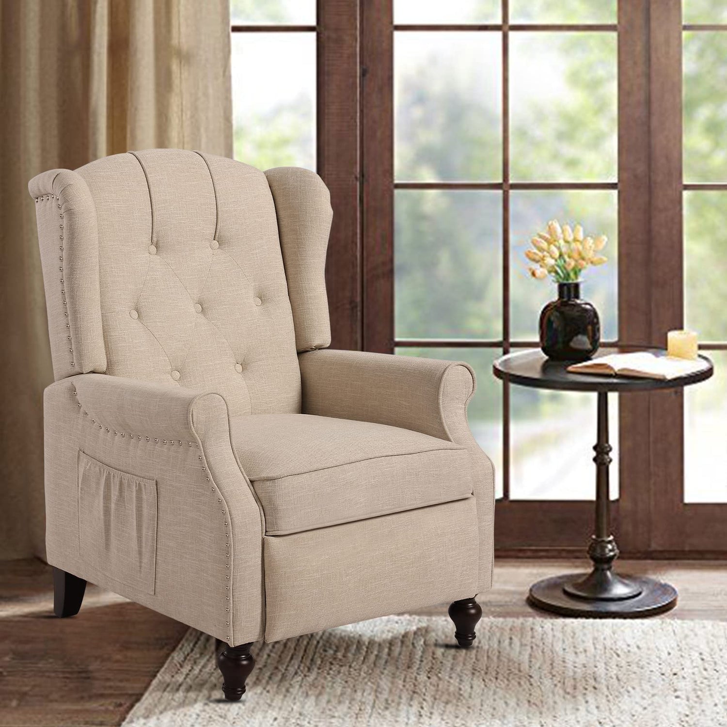 - PERFECT MODERN DESIGN: Tufted back and traditional design element makes your home more attractive and fashionable. The elegant wingback and rivets decoration blends the modern art with retro complex. Trending creamy-white color of this recliner ideal for bedroom, living room, office or other entertainment areas