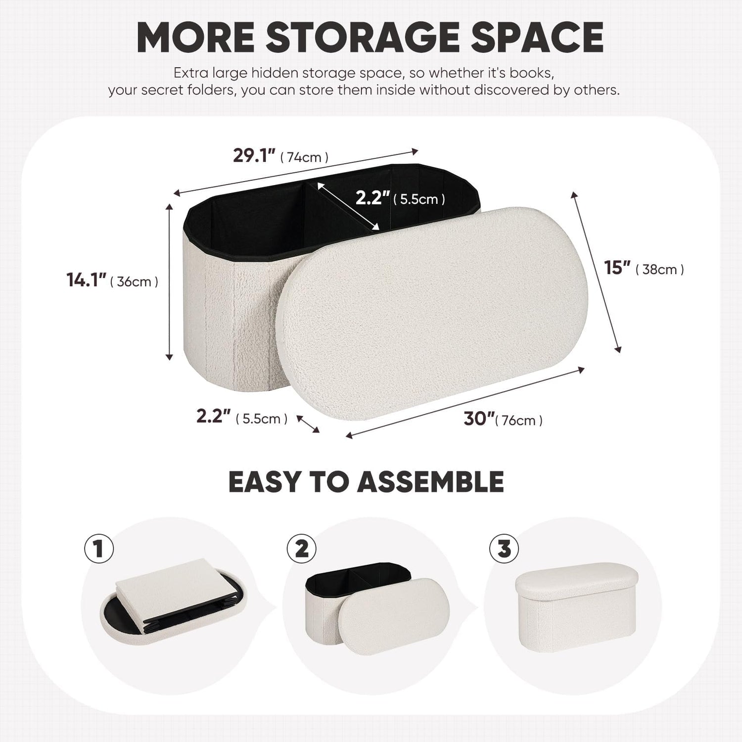 B FSOBEIIALEO Ottoman with Storage for Living Room, Sherpa Folding Storage Ottoman Foot Rest, 30 Inches Collapsible Bedroom Bench White