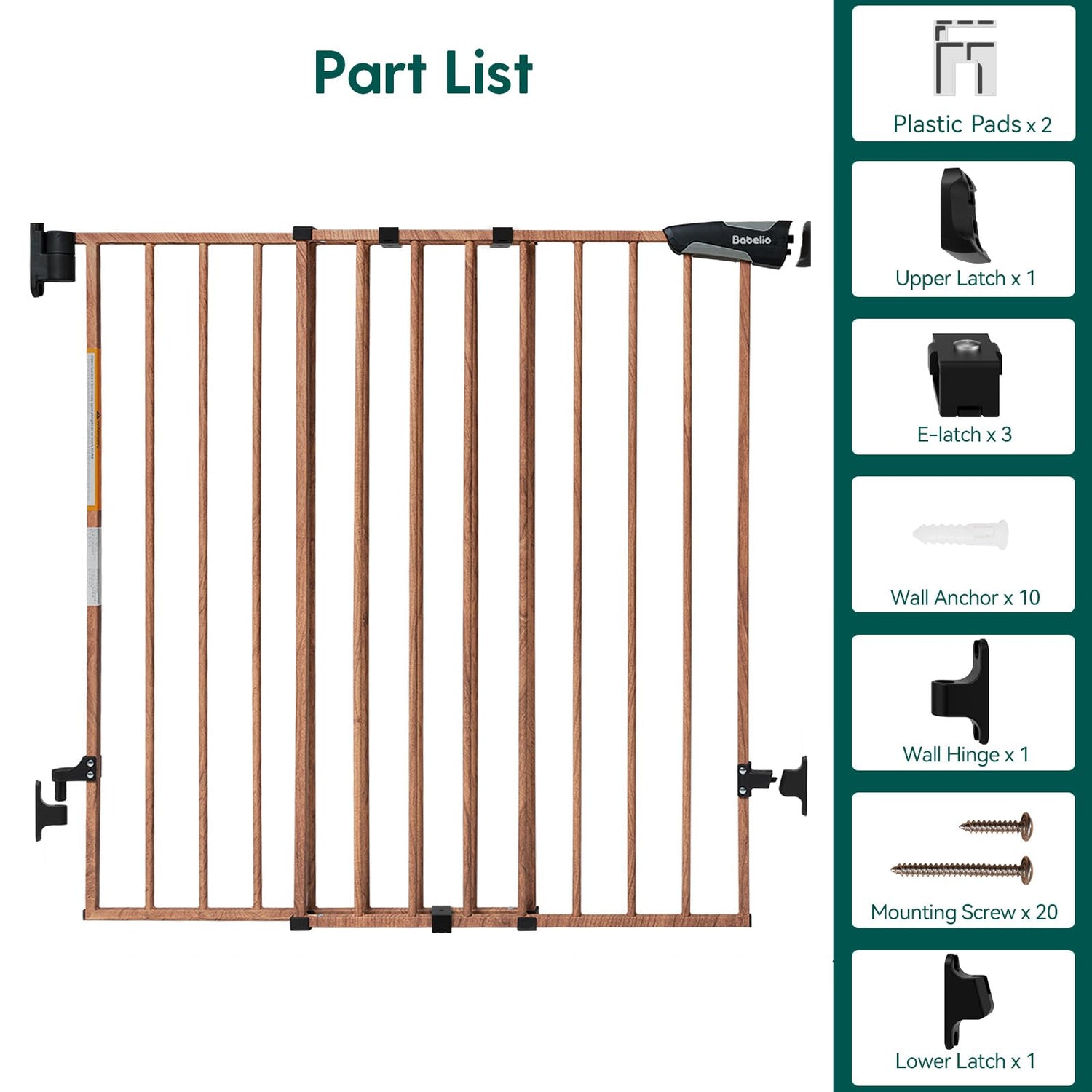 - 【Wood Pattern Metal Gate】The unique brown wood pattern appearance can blend into your home environment. Using all-steel material and double lock design, not only resist the impact of pets but also prevent children from opening the door.