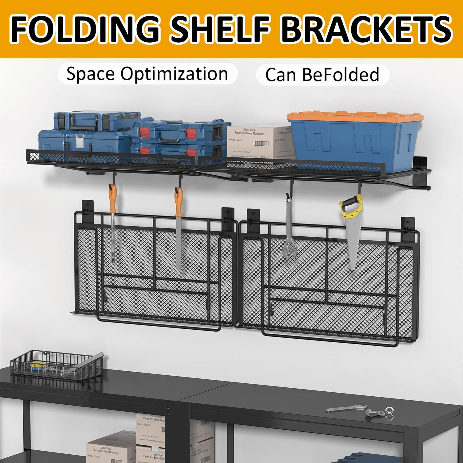 - Space Saving Wall Shelving Design: Wall mounted storage garage shelving can be hung on walls when not in use, this shelf adapts to your storage needs. Perfect for creating efficient garage storage systems or organizing small spaces. The practical design makes it easy to store everything from tools to household items while maintaining easy access