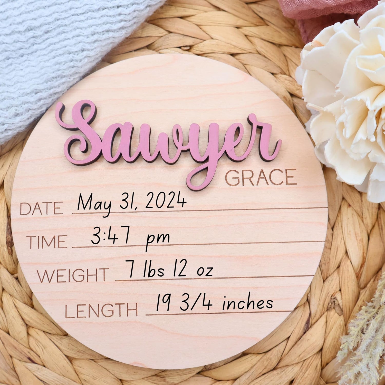 - Multiple Sizes Available: Our birth announcement signs come in multiple sizes to fit any space, making them versatile for various layouts. Available in 4", 5, 6", 7", or 8"