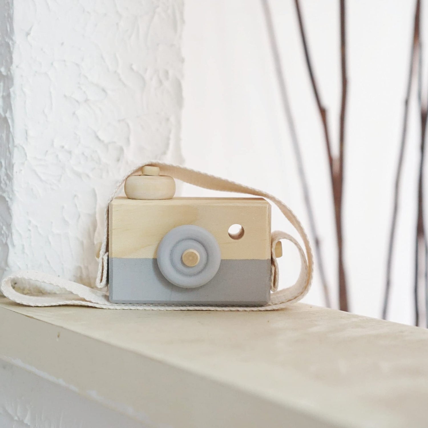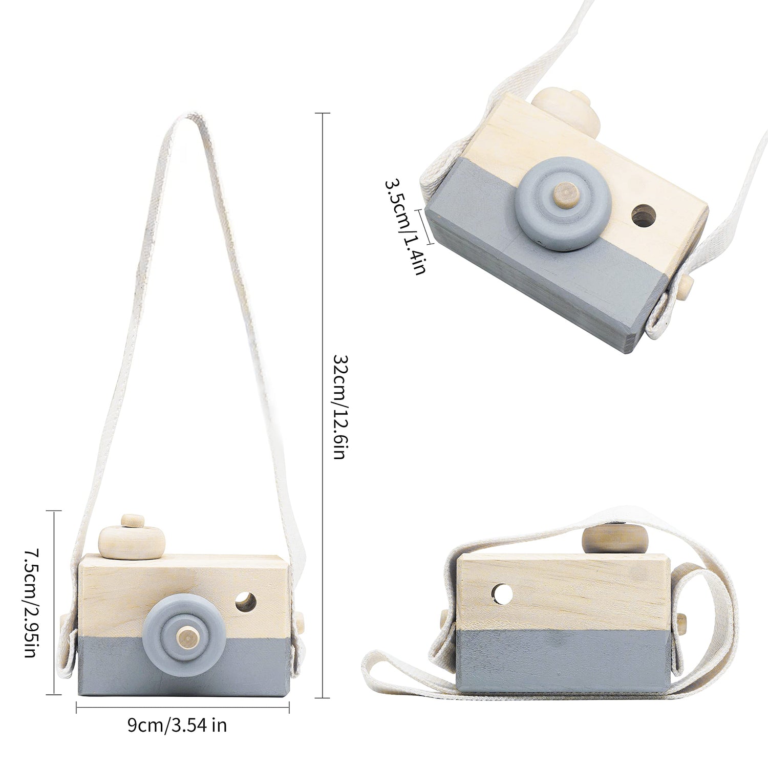 Baby Toy Wooden Mini Camera Toy, Baby Kids Cute Mini Sharpe Toy, Neck Hanging Photographed Props for Baby Toddlers Children Kids' Room Hanging Decor Gift (Gray)
