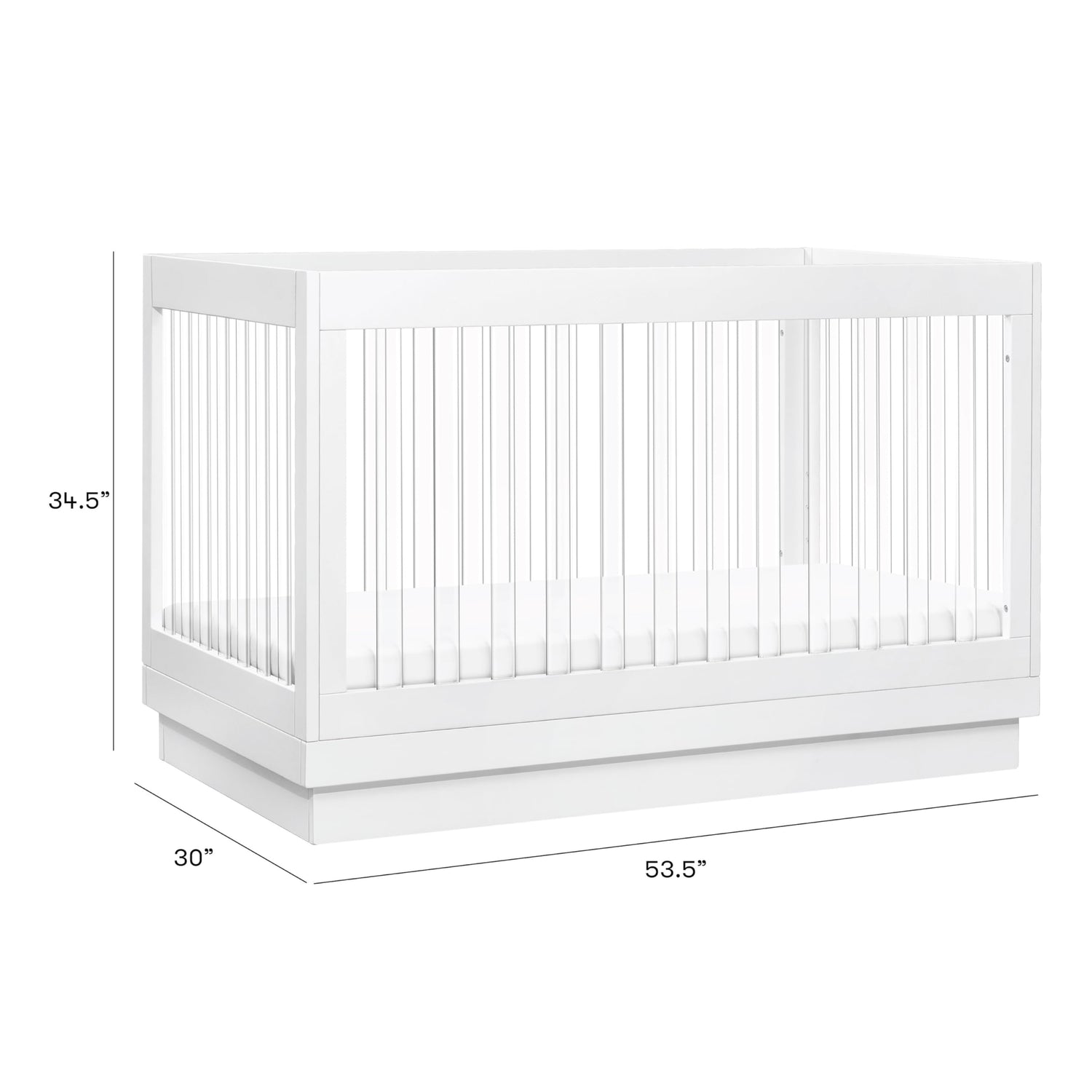 Babyletto Harlow Acrylic 3-in-1 Convertible Crib with Toddler Bed Conversion Kit in White with Acrylic Slats, Greenguard Gold Certified