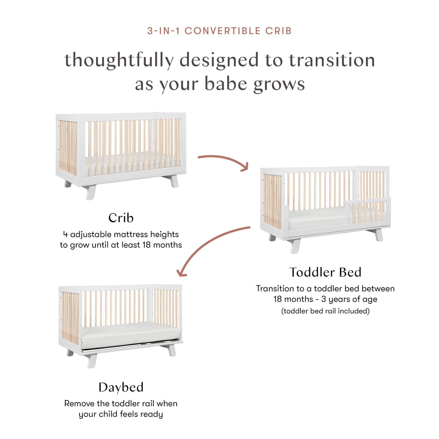 Babyletto Hudson 3-in-1 Convertible Crib with Toddler Bed Conversion Kit in White and Washed Natural, Greenguard Gold Certified