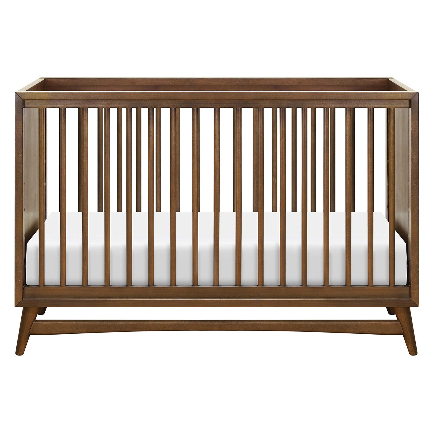 - REFINED MID-CENTURY MODERN STYLE: Featuring a modern, clean silhouette and classic rounded spindles. Flared tapered legs add a playful touch to this sophisticated crib. Complete your nursery with the babyletto Palma 7-drawer dresser.