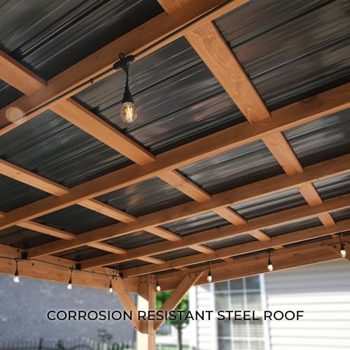 Backyard Discovery Arcadia 20 ft. x 9.5 ft. All Cedar Wooden Gazebo Pavilion with Hard Top Steel Slant Roof