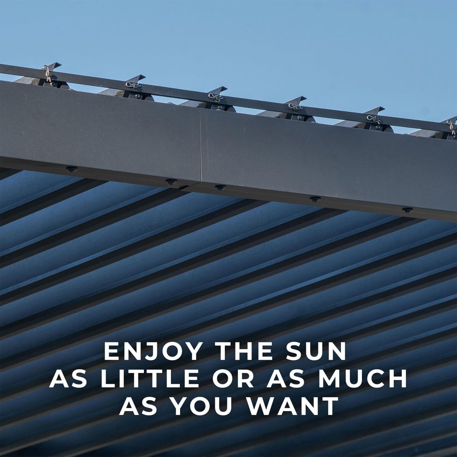 - Adjustable Louvered Roof: Included wand allows louvers open fully to allow direct sunlight or close completely for total shade and rain protection