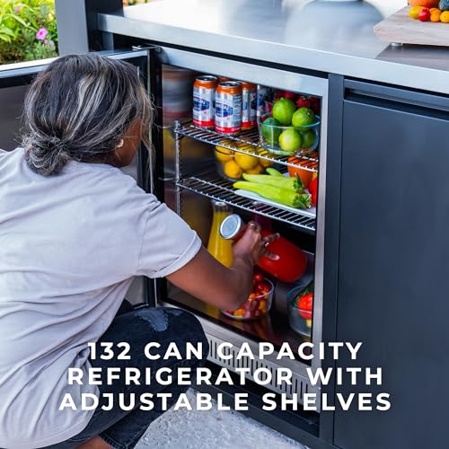 - Outdoor-Rated Refrigerator: 23-Inch 5.3 Cu. Ft. Refrigerator Features Our 304 Stainless Steel Construction Rated For Outdoor Use Over 100°F. With Led Interior Light, Single Zone 3-Layer Storage System And 150L, 180 Can Storage Capacity.