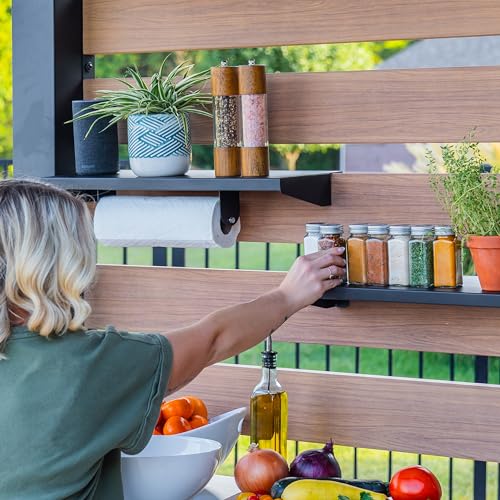 - Premium Appearance: 100% Galvanized Steel Construction Provides Corrosion And Rust-Proof Protection While Combining Modern Touches Of Black Powder-Coating Complemented With Wood-Grain Coated Accents.