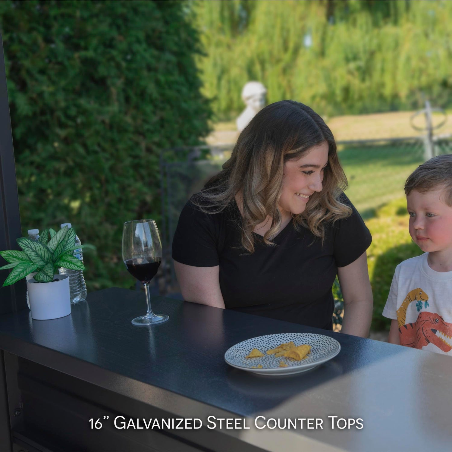 - Integrated Countertops: Two 16" galvanized steel bar tops, designed as one piece with no seams offer easy assembly and cleaning