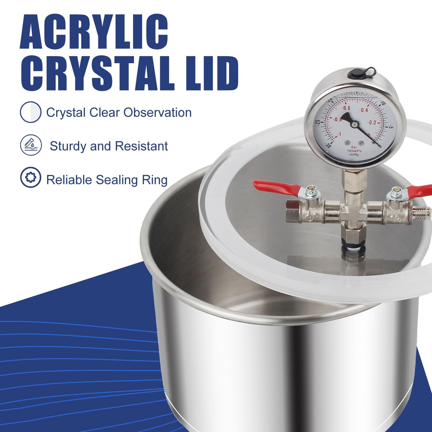 BACOENG 1 1/2 Gallon 3.6 CFM Vacuum Chamber with Pump, Degassing Vacuum Chamber Kit for Resin
