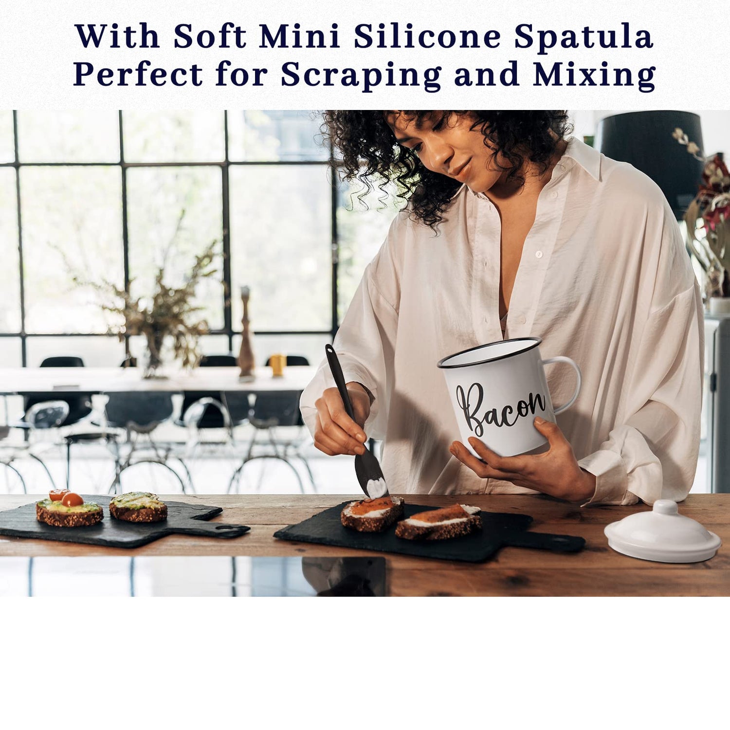 Bacon Grease Container with Strainer - With Food-Grade Silicone Spatula , 46oz Large Enamel Rustic Farmhouse Fat Container , Keeper , Recipes , Dishwasher Safe