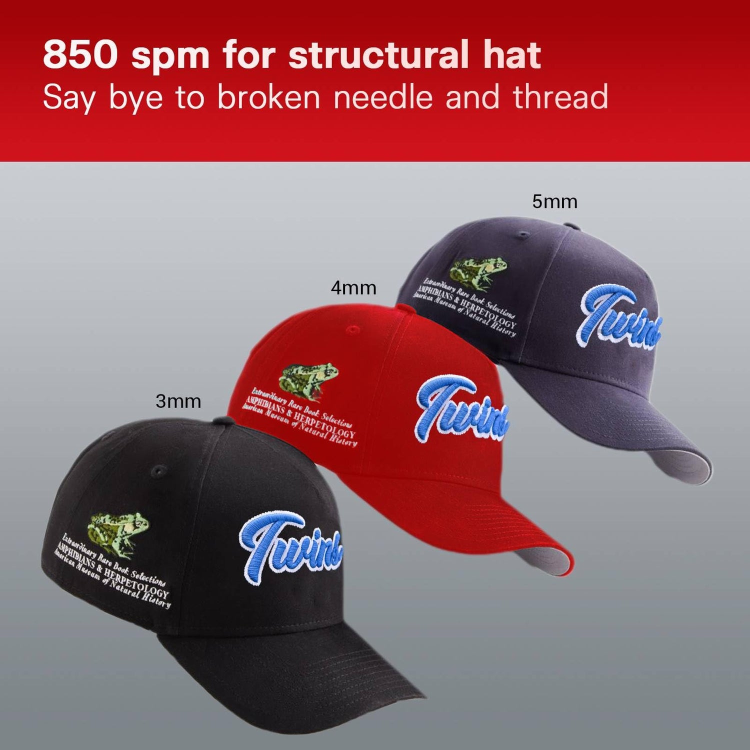 - 【High working speed】 Multi needle hat embroidery machine can reach up to 1,200 stitches per minute in five seconds, When embroidering structural hats can be stabilized at 850 spm, which is 200 spm higher than the existing embroidery machines on the market, helping you increase productivity by 20%