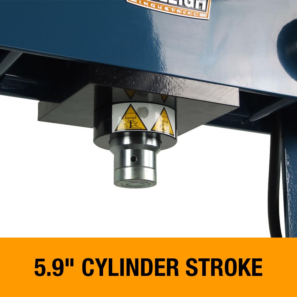 Details: The Baileigh HSP-30A pneumatic shop press features a ridged, fully-welded main frame, allowing the operator to use the full 30 tons of force! Industrial-grade, hydraulic parts ensure smooth, dependable use for years. The cylinder can move left and right within the frame, depending on the orientation of the job. You also have the option to work the HSP-30A manually if you need finer control. The working width of this shop press is 21.65 inches, and the cylinder stoke is 5.9 inches. This shop press includes its own standard set of V-blocks, making this H-frame shop press a great value. Furthermore, Baileigh covers this shop press with a one-year parts warranty and lifetime technical support by phone. This H-frame shop press is ready to tackle the toughest jobs.