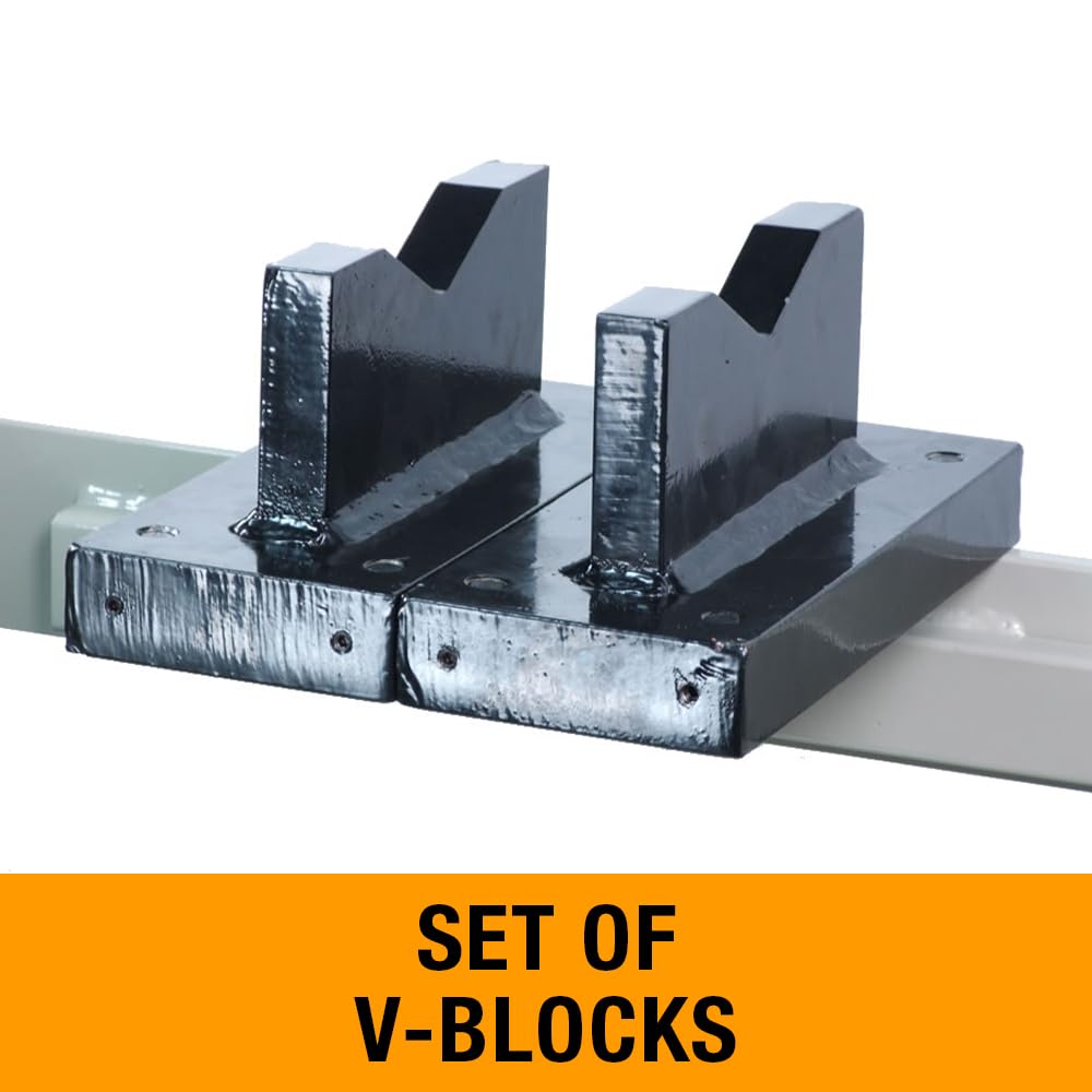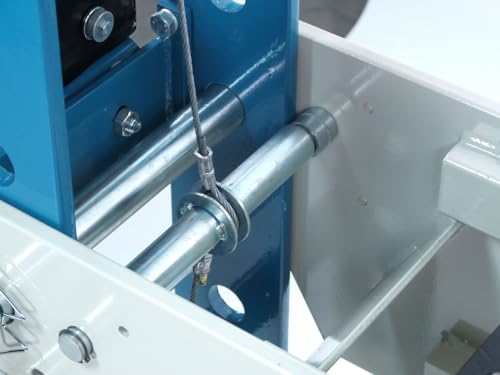 The large 9-inch diameter cylinder of the shop press features a 9.8-inch stroke. Yet, the operation of the press is simple and controllable because of its integrated foot pedal. For even more control, the operator may chose to use the manual hand pump that is located on the side of the pneumatic press. Industrial grade hydraulics are standard on this shop press to ensure years of useful operation. Just hook up this press to a compressor that can put out between 90 to 115 psi and go to it. The Baileigh Industrial shop press also has a unique feature that allows the operator to lift and lower the working table with the help of a winch and pulley system. This will save time as well as the back of the operator when table relocation is needed. The pneumatic press also comes with its own set of vee blocks.