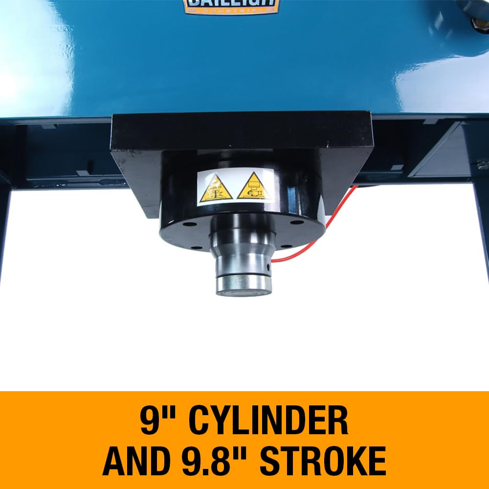 Details: The Baileigh HSP-75A H-frame press maintains accuracy with fully-welded steel main frame. Go ahead and use its full 75 tons of force. This air-powered shop press won’t flex or buckle on you!