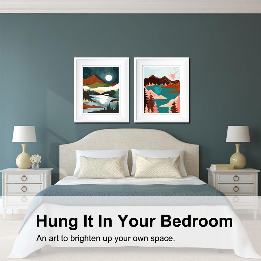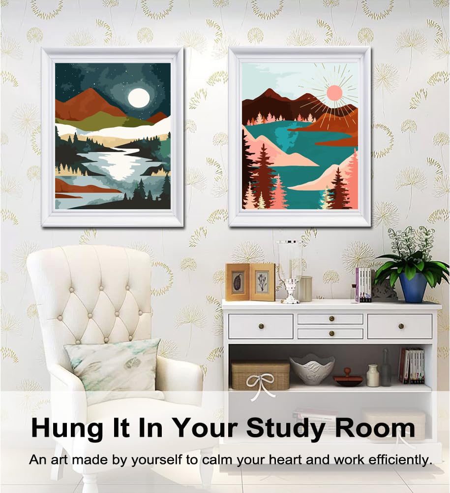 BAISITE Paint by Numbers Kit for Adults Beginners,12" Wx16 L 2 Pack Canvas for Painting Kits for Adults in Colorful Box-Sunrise Lake Mountains 6970