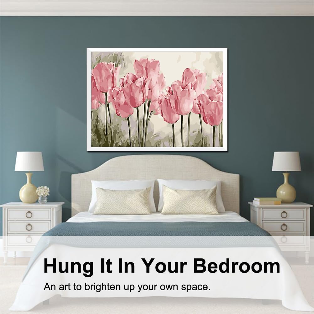 BAISITE Paint by Numbers Kit for Adults Beginners,20" Wx16 L Canvas for Painting Kits for Adults in Colorful Box Poppy Flowers-BSC002