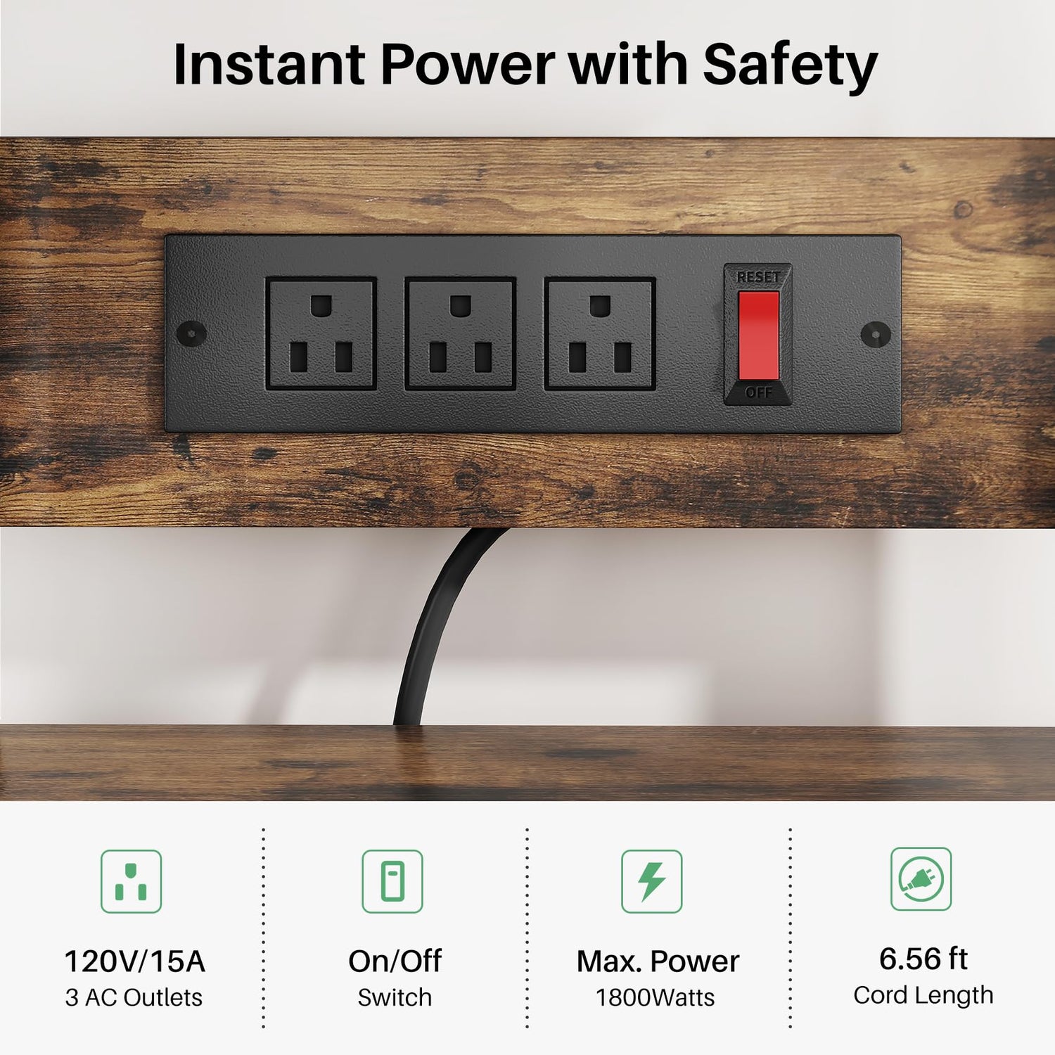- Bakers Rack with Power Strip: Certified by UL, the built-in power strip with 3 AC outlets and an on-off switch (1800W Max) ensures efficient and safe power to your appliances within reach, which provides safety and convenience for your kitchen time.
