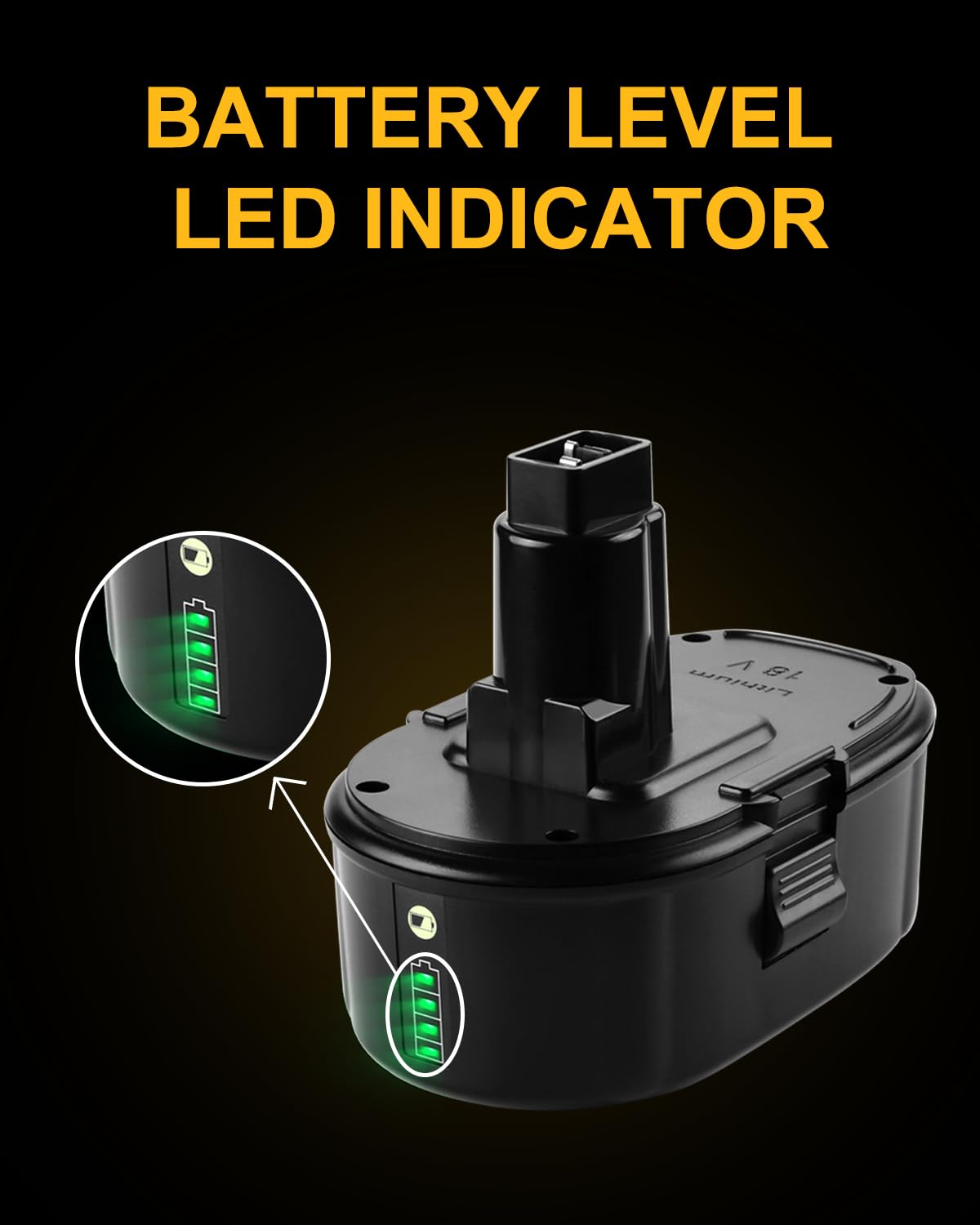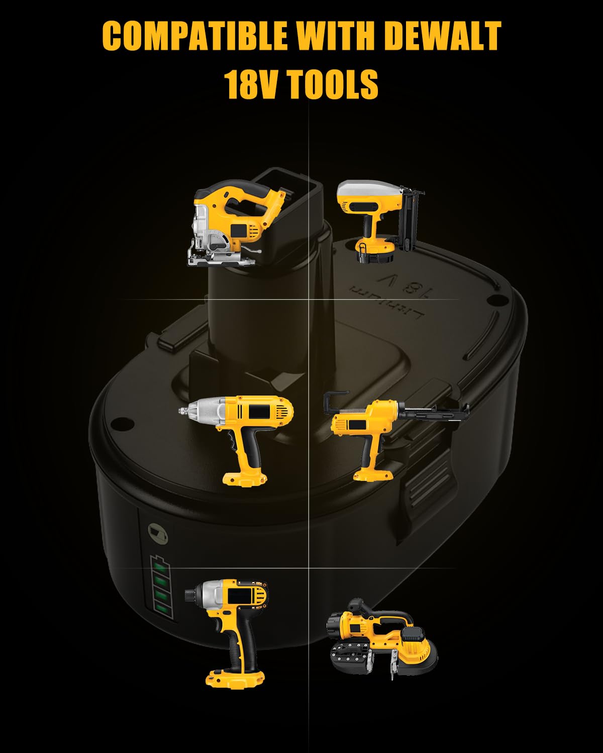 - ☑️【Compatibility】Fit for all Dewalt series of 18V tools.Compatible for dewalt batteries: DC9096 DC9098 DE9039 DE9095 DE9096 DE9098 DW9095 DW9096 DW9098. Fit original Dewalt 18V NiCad/NiMH charger. RECOMMENDED CHARGER: DW9116 (NOTE: may not compatible with DW9226 charger)