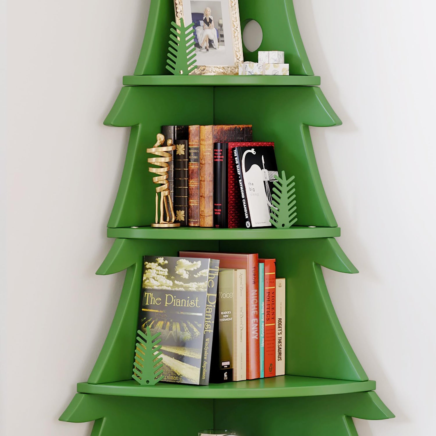 - 【Storage Space】:Christmas Tree Corner Bookshelf Size: 29.8''L ×21.2''W× 71.1''H. The bookshelf provides ample storage space for books, ornaments and other items, and can also be used as a display shelf for beloved accessories to keep things neat and orderly; the extremely narrow footprint can be easily placed anywhere in your home, and the vertical space improves space utilisation.