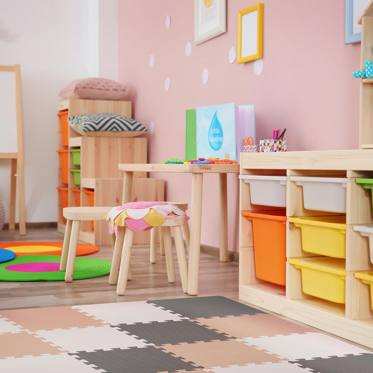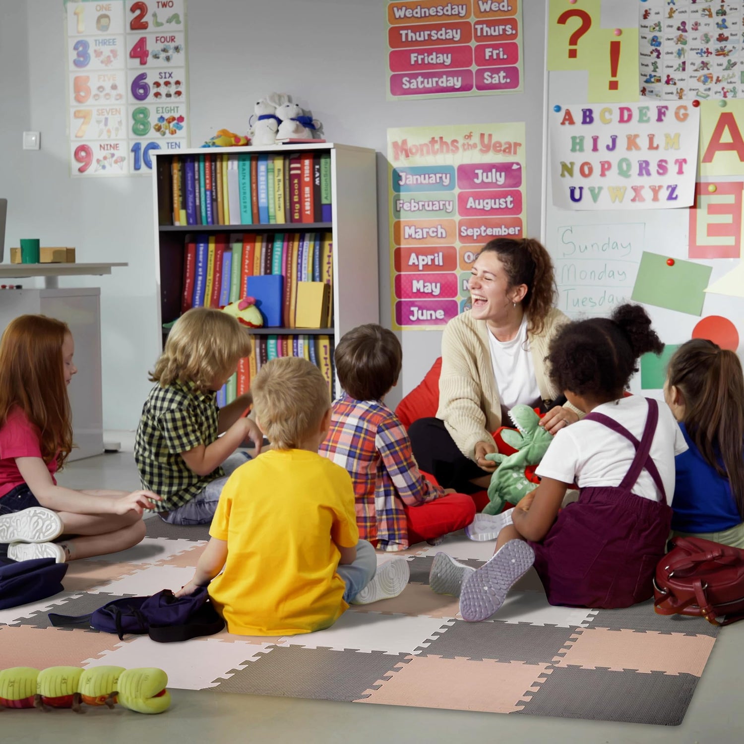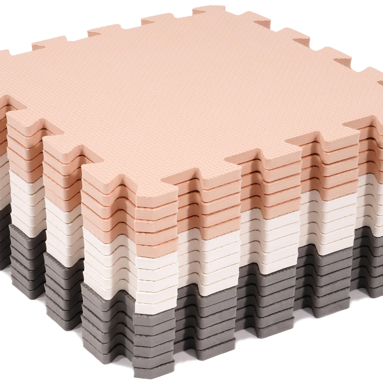 - Colorful Design: Featured color scheme of cream, gray, and beige, this interlocking mat pack covers up to 16 square feet of play space, with each tile measuring 1 square foot