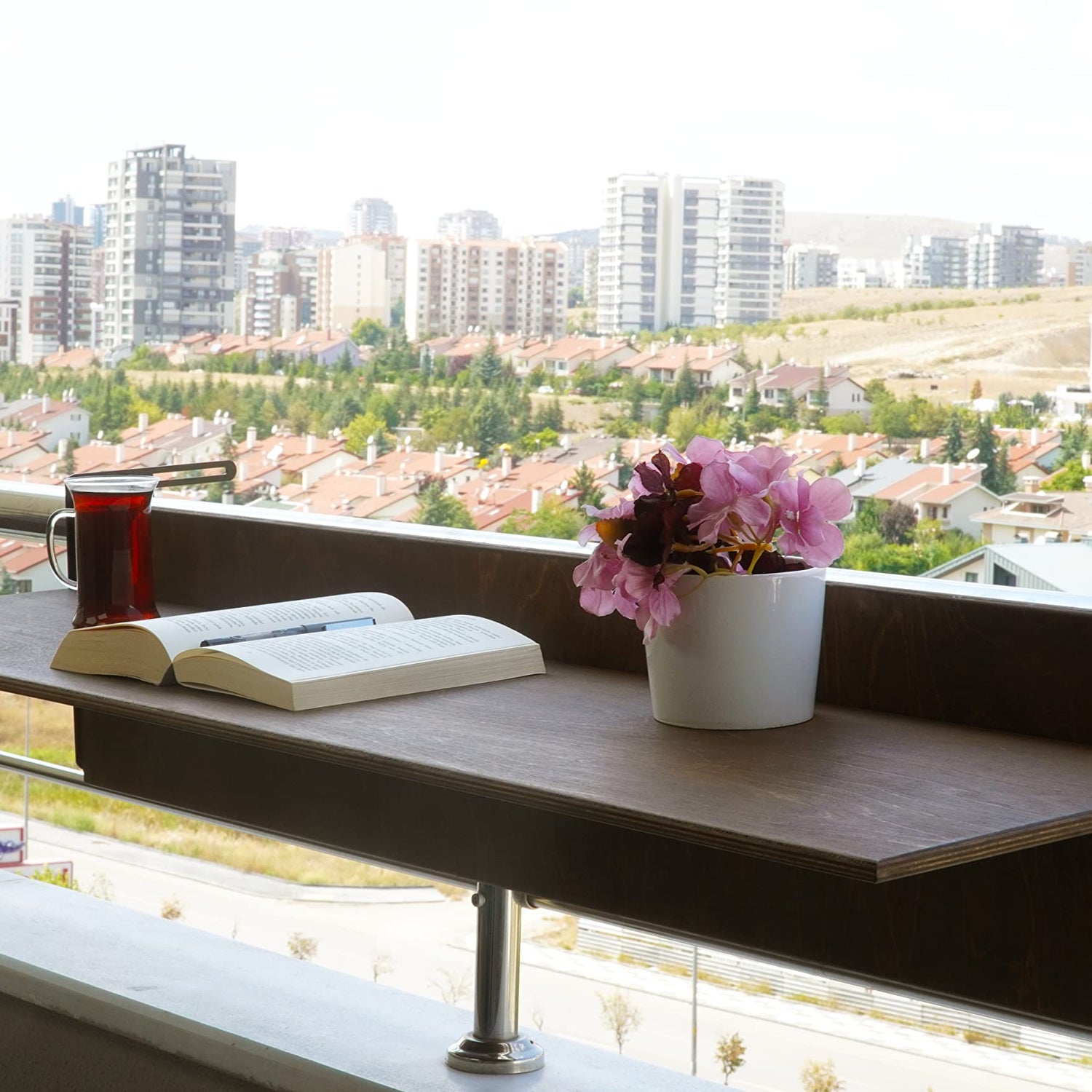 - STURDY WOODEN: In this balcony table, handcraft was used from the beginning to the end of the production phase. This Balcony Bar Table is suitable for all kind of patio, terrace and balcony. It is a great space saver product and very good decor. Static painted stainless steel brackets. Our products get their quality from birch.
