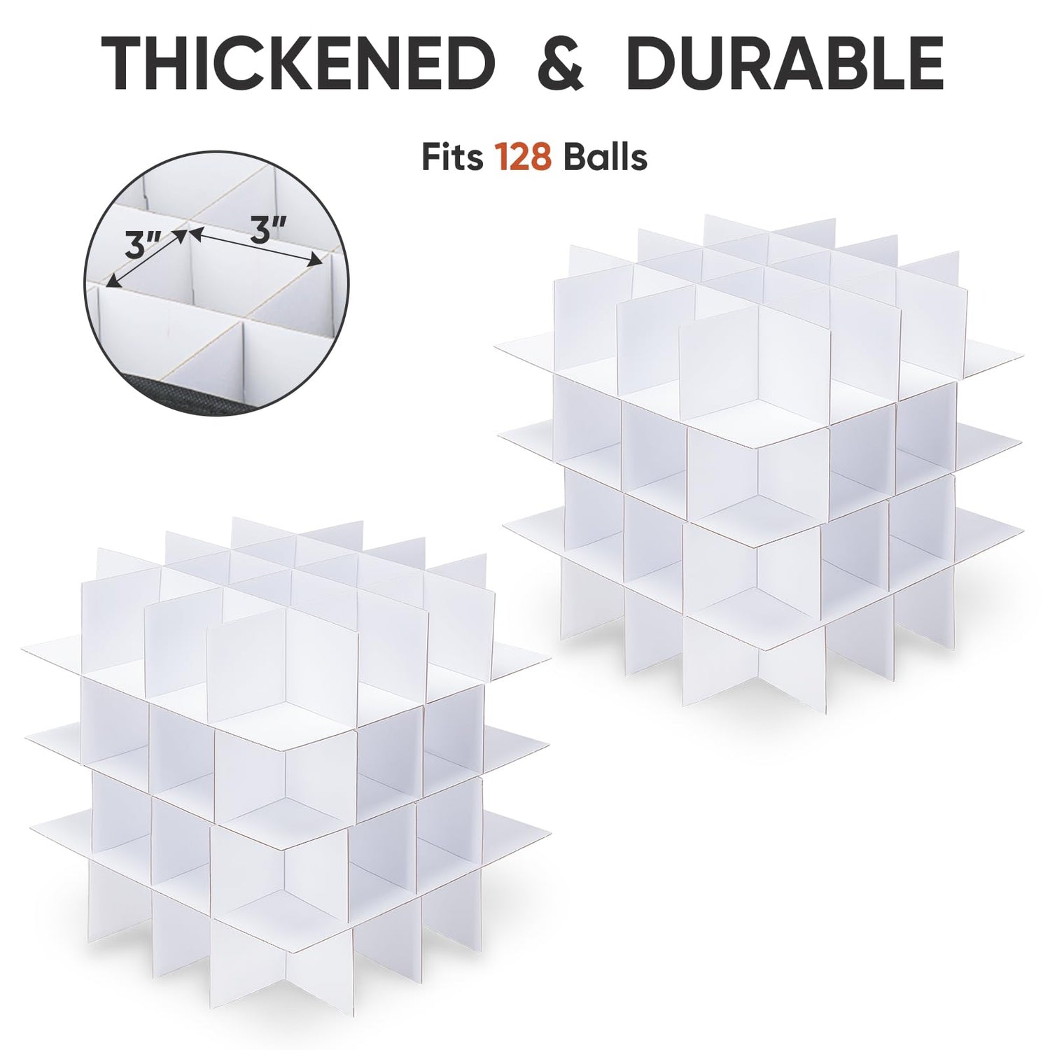 - [WELL ORGANIZED] Our Christmas ornament organizer comes with cardboard dividers to individually organize your decorations and prevent them from bumping into each other or getting damaged. Each compartment measures 3 inches for accommodating most sizes of Christmas balls. By removing the inserts, you can also store larger Christmas ornaments.