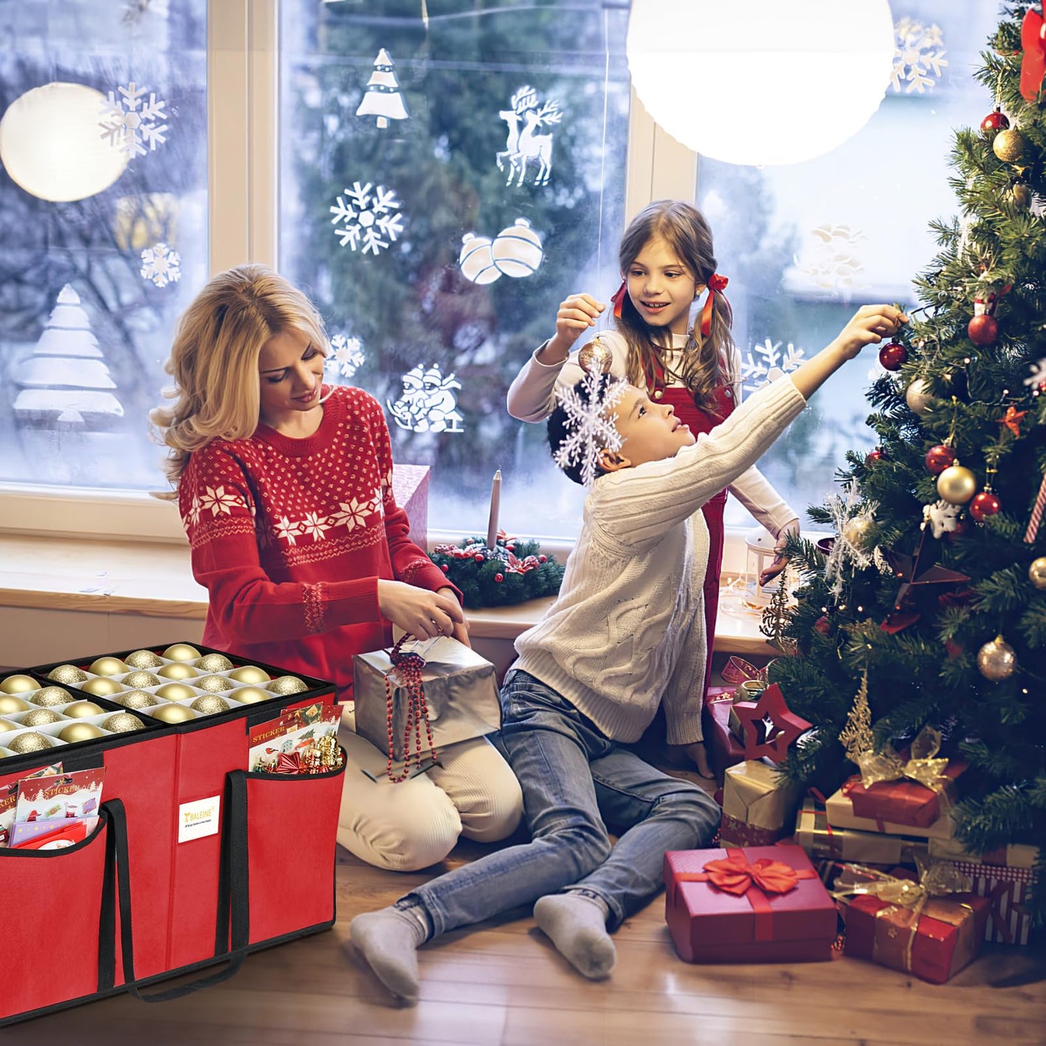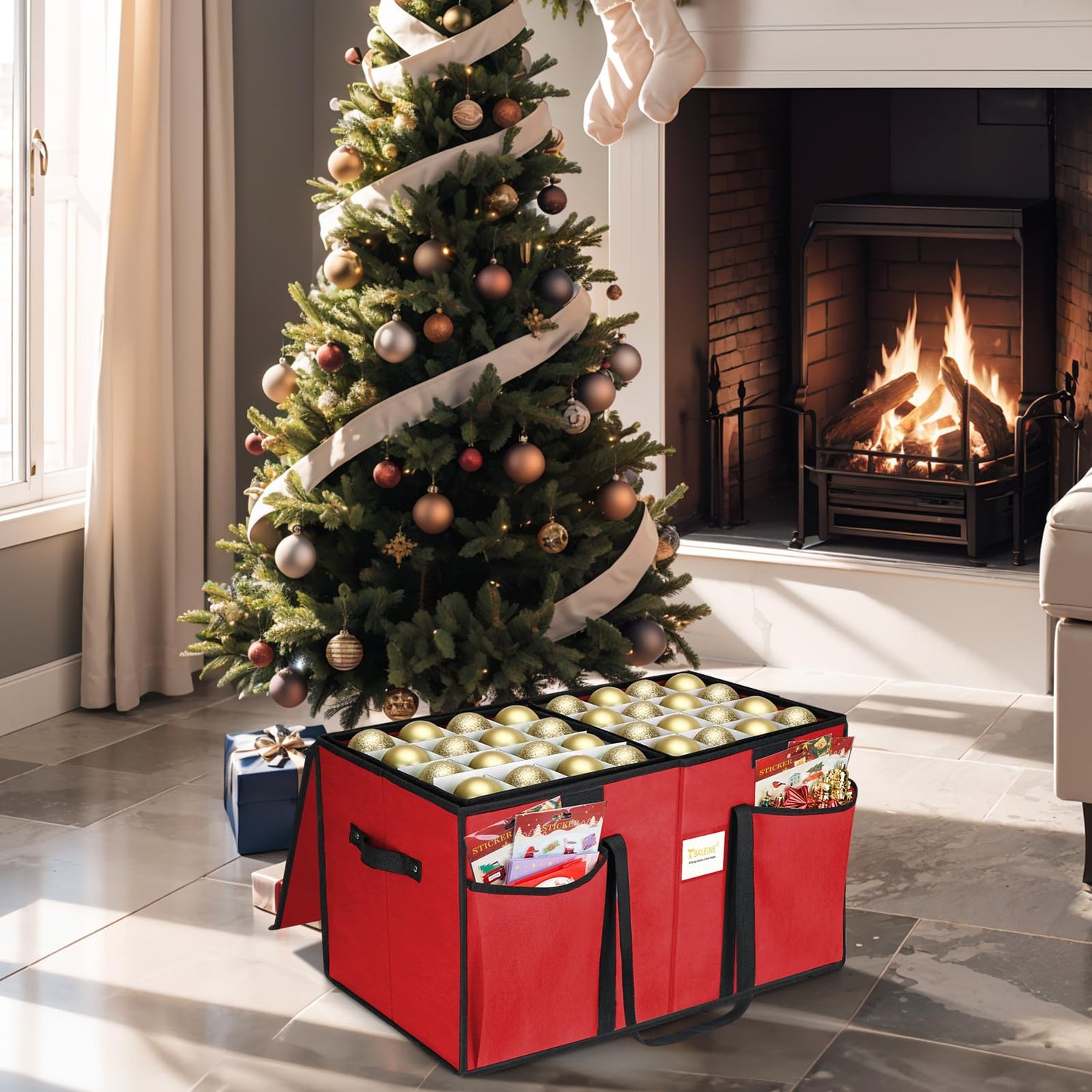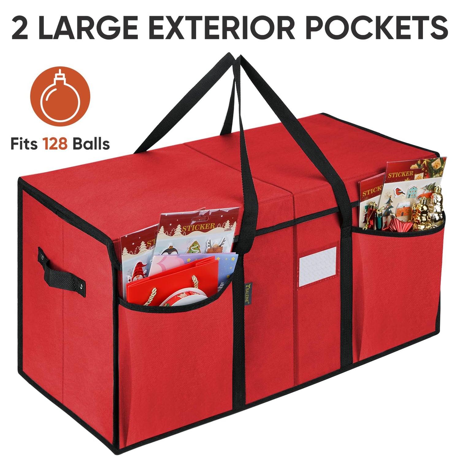 - [DURABLE HANDLES] Reinforced seams and sturdy side handles allow you to move the Christmas ornament storage bin anywhere without any worries, ensuring ease of use and efficient storage.