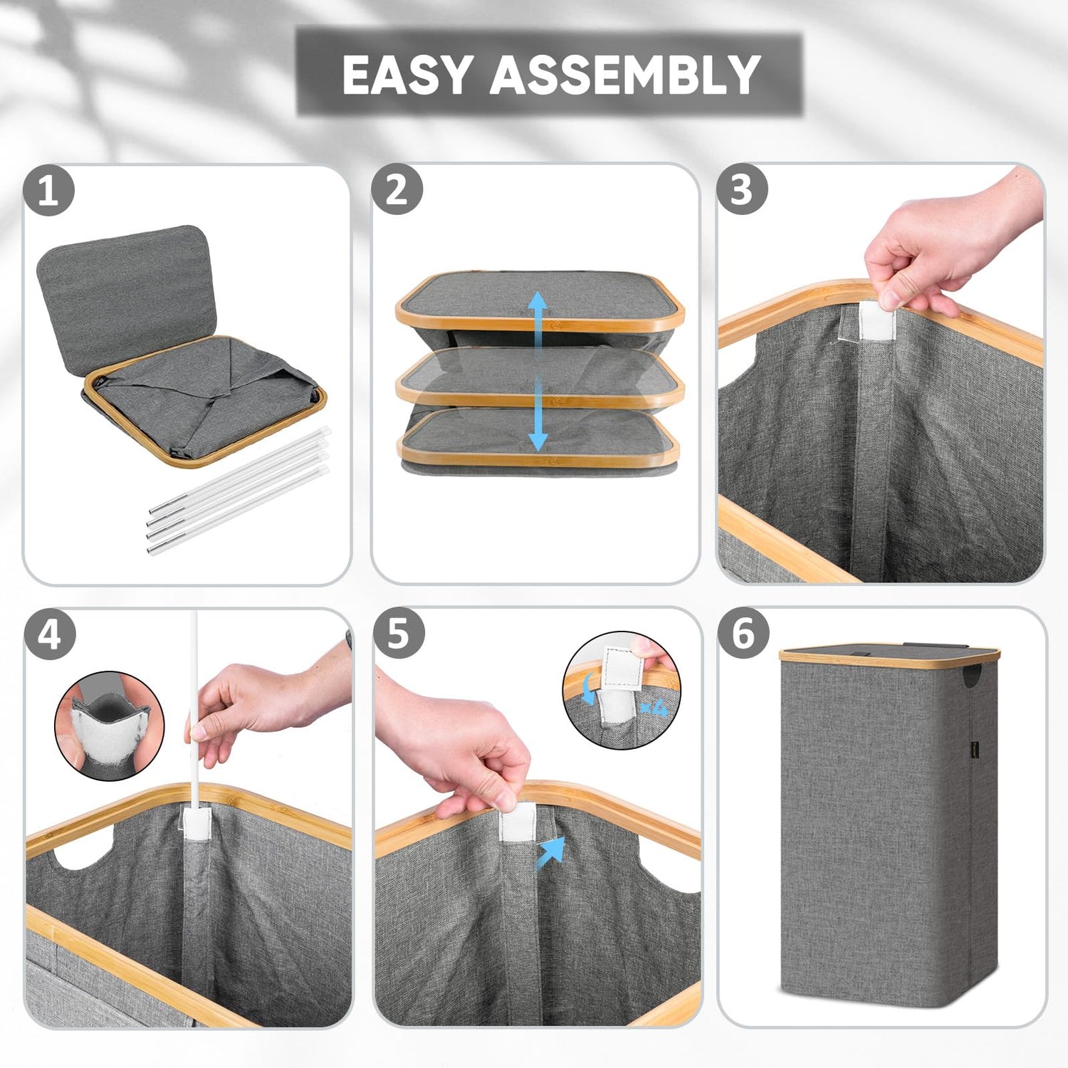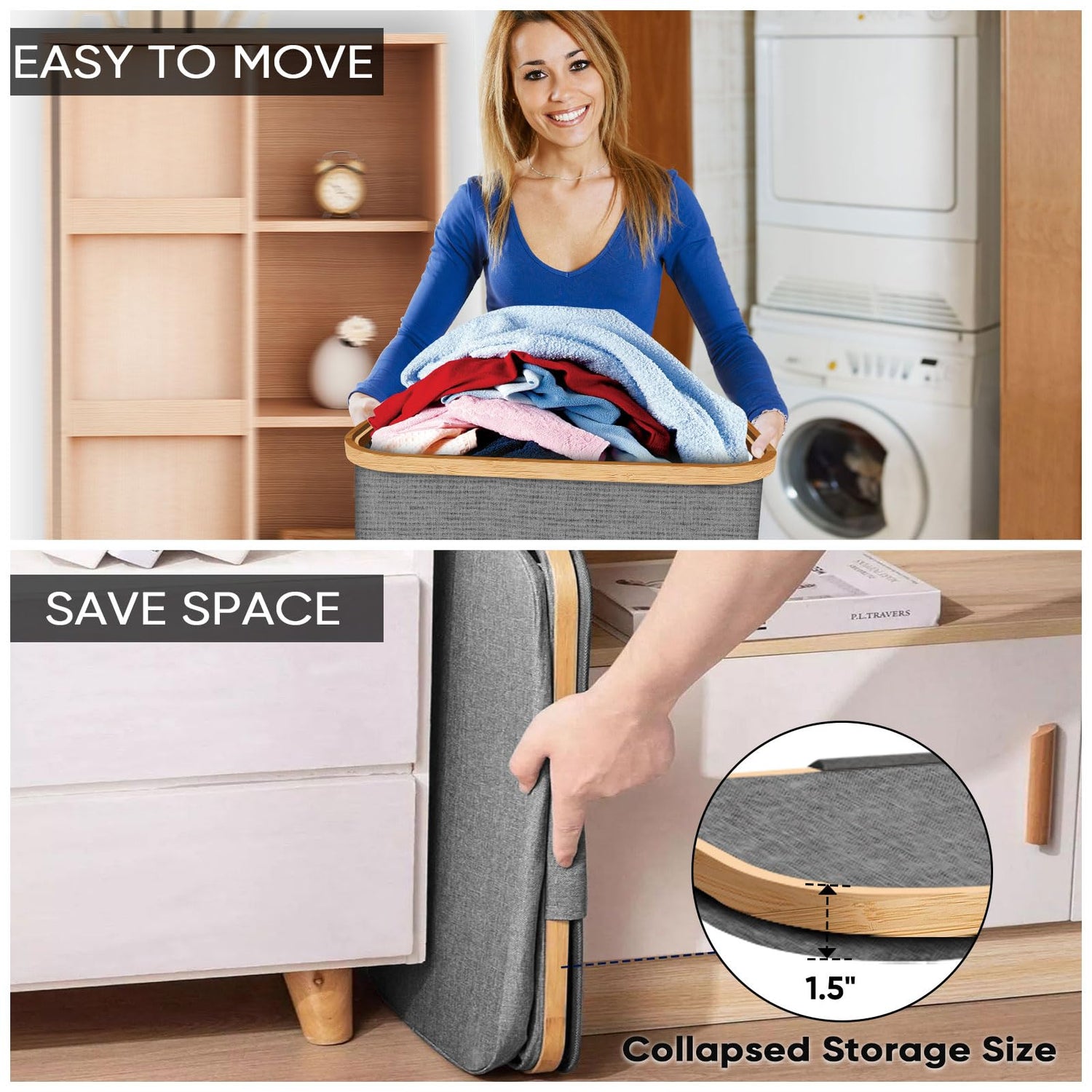 - [DURABLE AND ECO-FRIENDLY] We care about the environment, which is why our laundry hamper is made from sustainable bamboo rim. Bamboo is known for its exceptional strength and durability, ensuring this clothes hamper's handle will withstand the test of time. By choosing our eco-friendly laundry basket organizer, you're making a conscious decision to reduce your carbon footprint