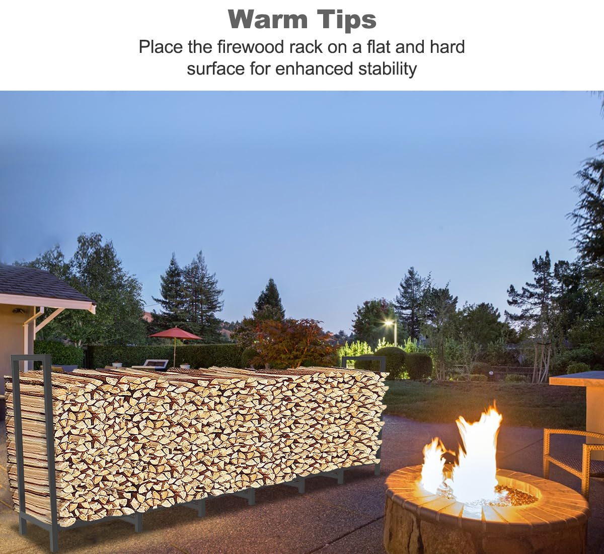 - Easy Assembly & Helpful Tips -- This freestanding firewood storage rack features a simple structure that can be easily assembled within minutes following the instructions provided. A helpful tip is to place the firewood rack on a firm and level surface for enhanced stability.