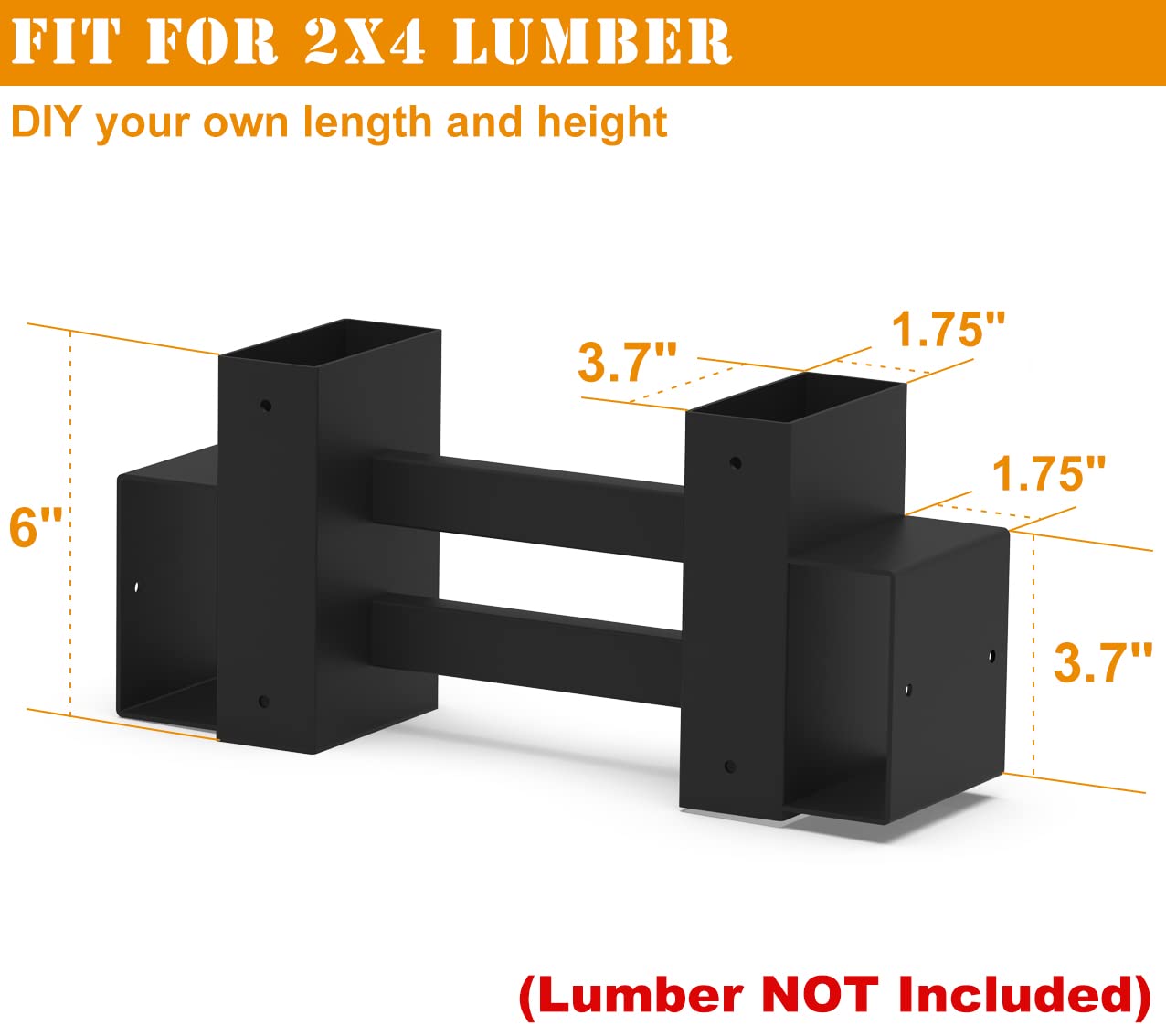 - 【 FIT FOR 2x4 LUMBER 】- Each outside metal wood stacker bracket measures 12- ¾ inch length by 3-¾ inch width by 6" depth. The inside 8 holes (3-¾ x 1-¾) well fit to the wood with cross section of 2 x 4 (lumber NOT included), and good ideal for personalized board dimension cutting. This allows you to customize just how big you want your out side log stacking to be.